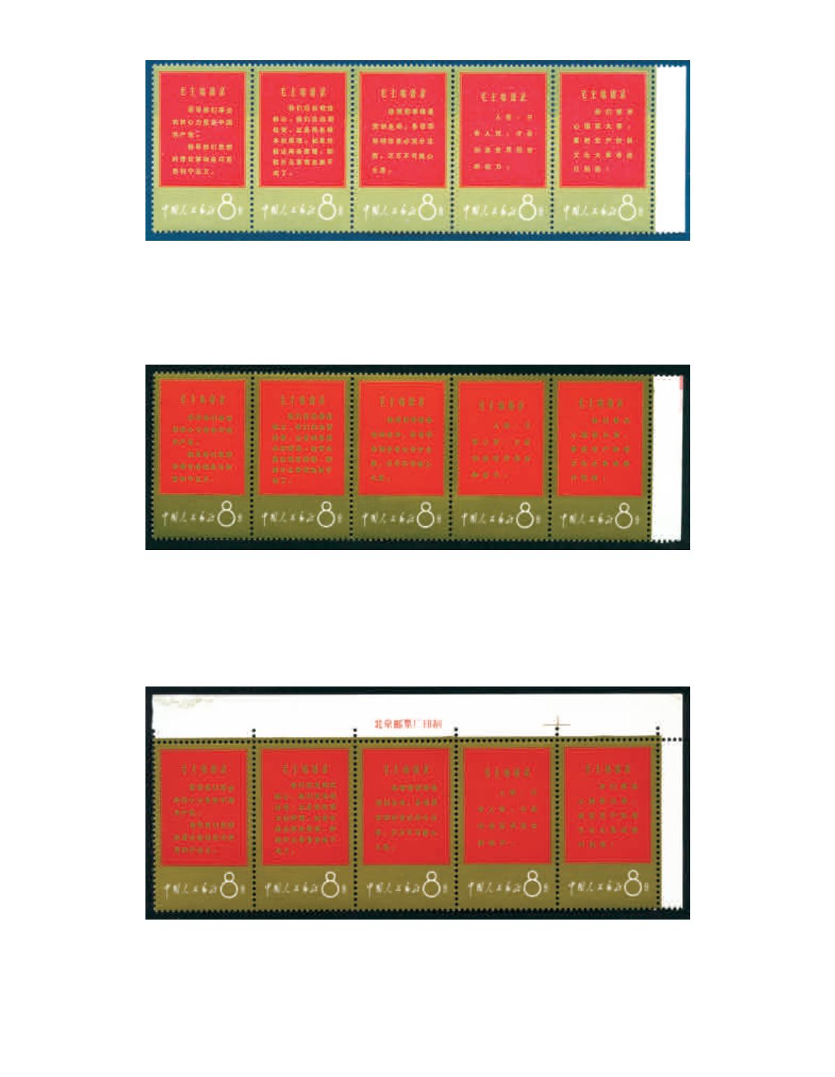1967 Long Live Invincible Chairman Mao's Thought (W1) complete set of 11, golden colour and red colour in strip of 5 with