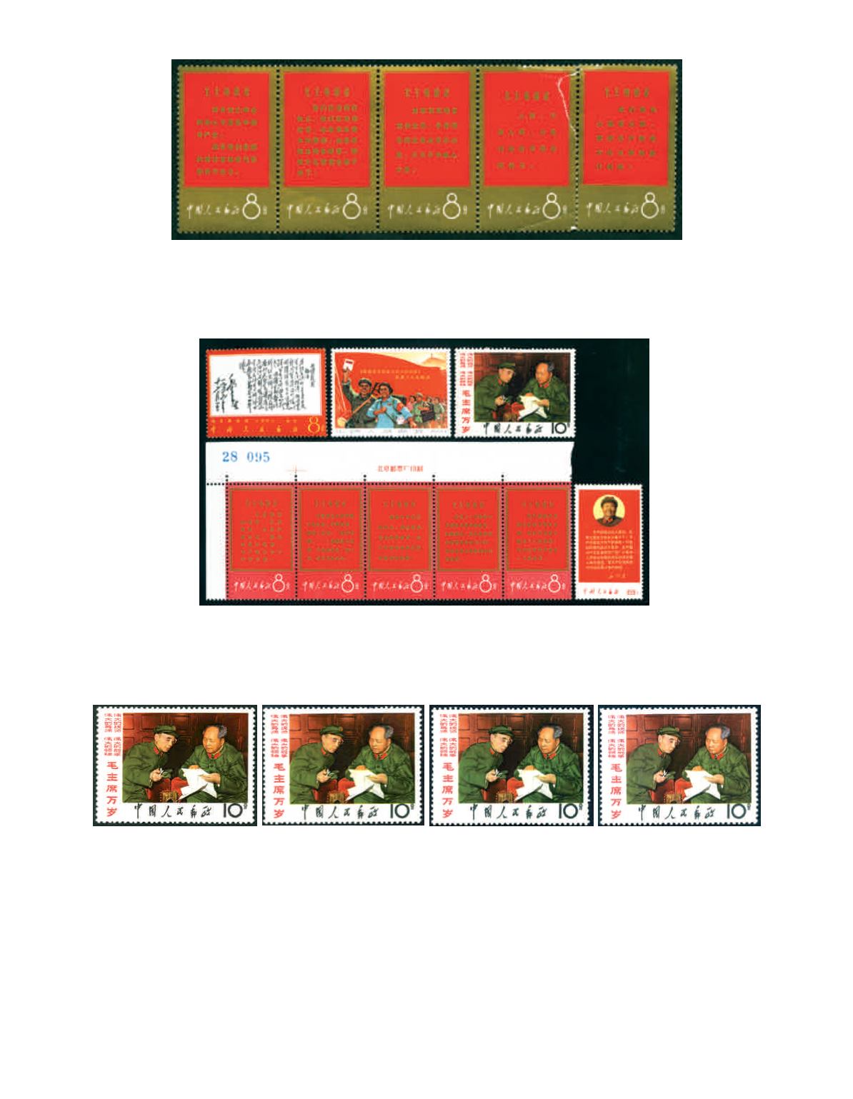 1967 (W1) Long Live Invincible Chairman Mao's Thought complete set, the gold tenant right side 2 stamps damaged, and
