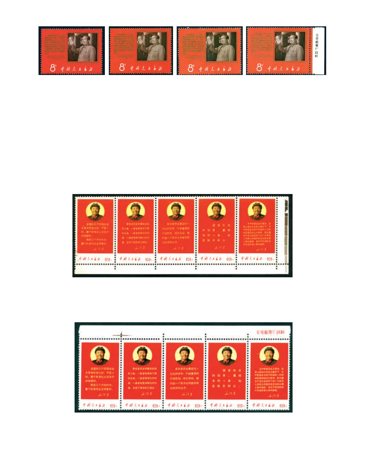 1968 Instruction from Chairman Mao (W10) complete set of 5 in strip with imprint margin, folded and lightly toned, unmounted