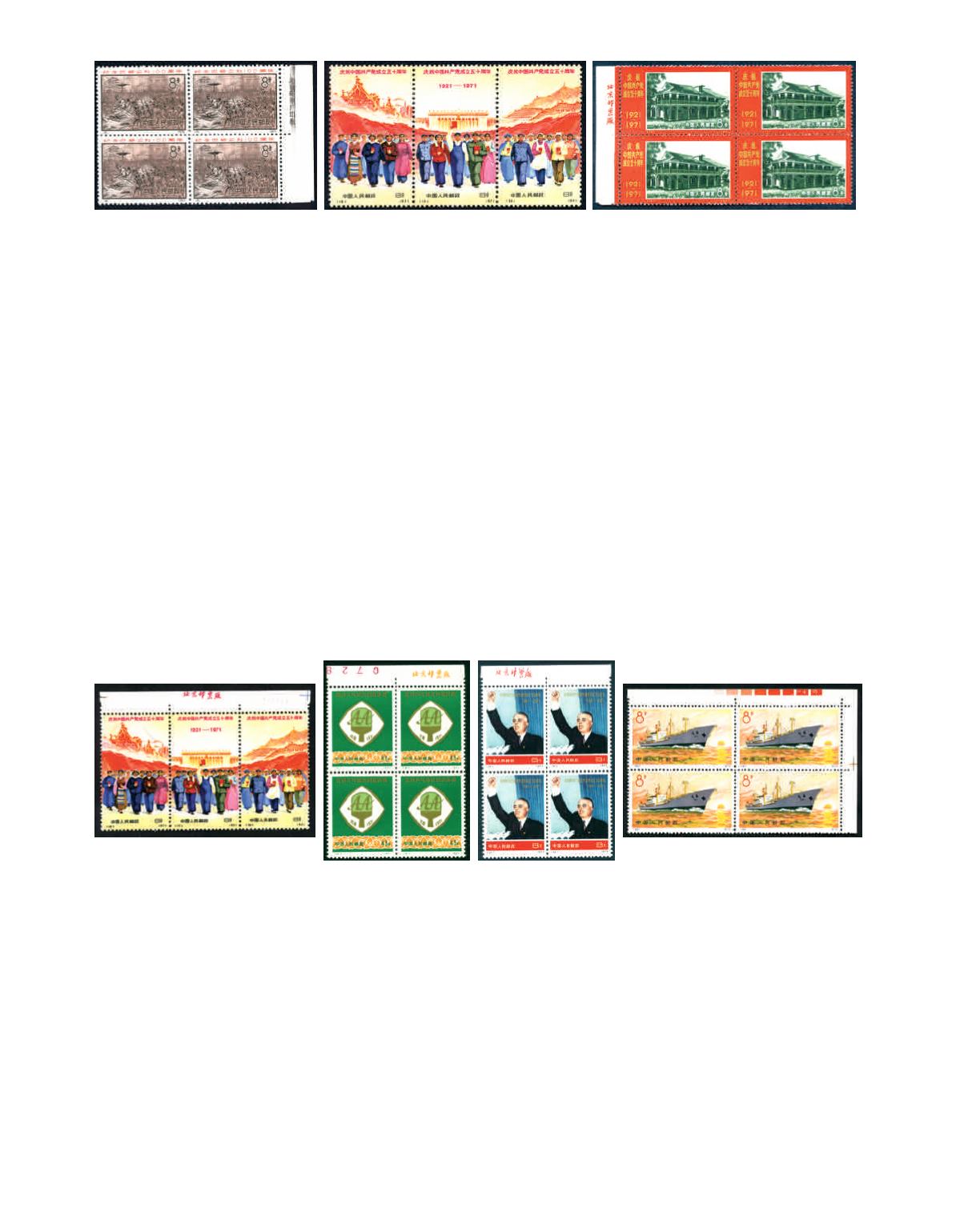 1971 50th Anniv of Founding of the Chinese Communist Party (N4) complete set of 9, strip of 3 and 6 stamps. All with imprint