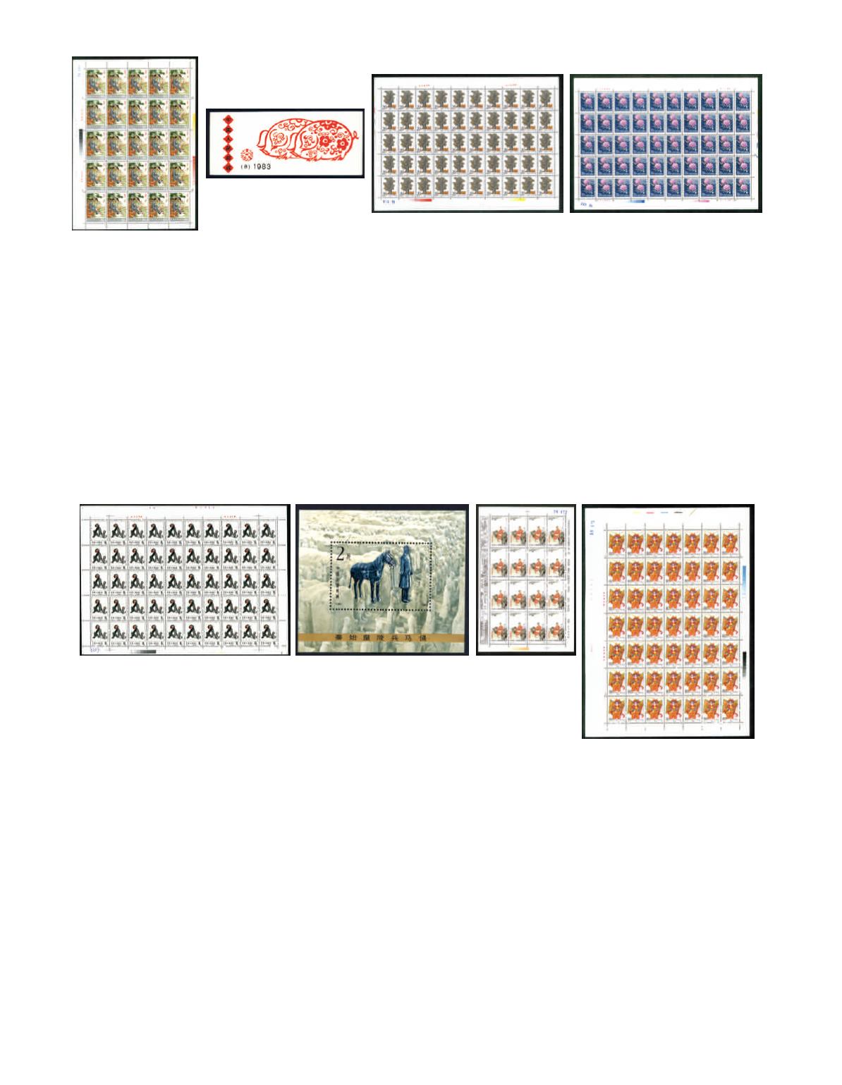 1982-83 (T70) The Year of Dog complete sheet and (T80) The Year of Pig complete sheet, both unmounted and toned. Photo