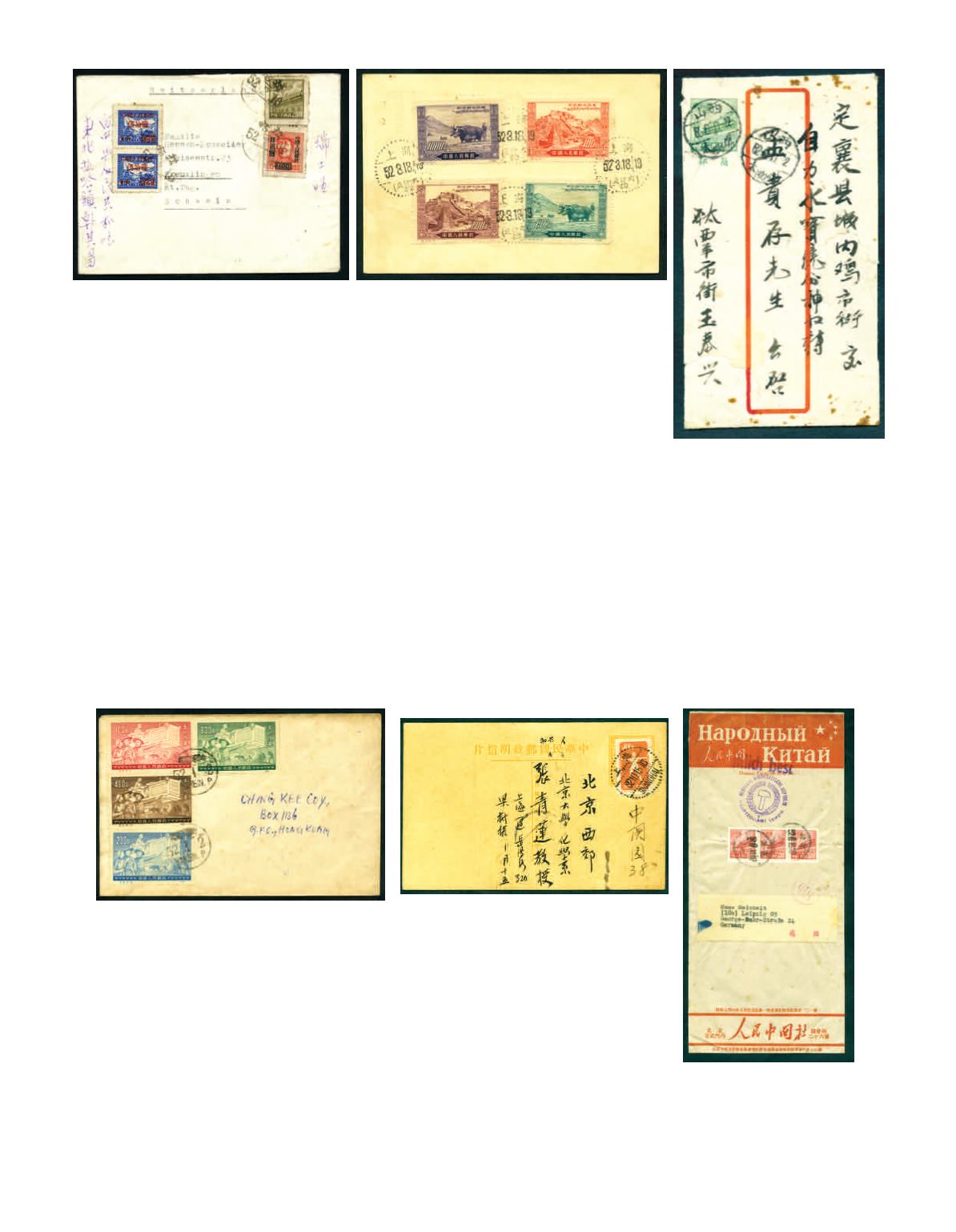 1952 (16 Feb.) A cover from North East to Switzerland, bearing Tien An Men R1 2,000, SC6 $400 on $15 and SC7 Surcharged on