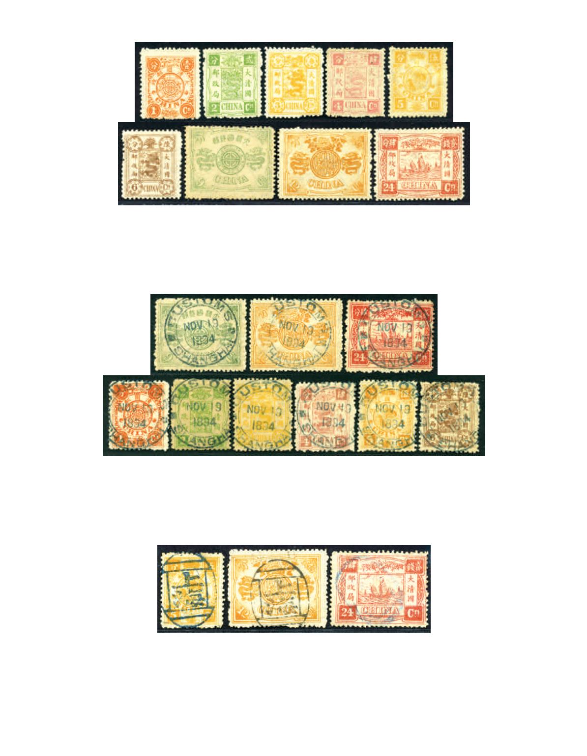 1894 Dowager first printing, 1 cand to 24 cands complete set of 9, all tied by 'SHANGHAI' seal chop, very fine. Chan 22-30.