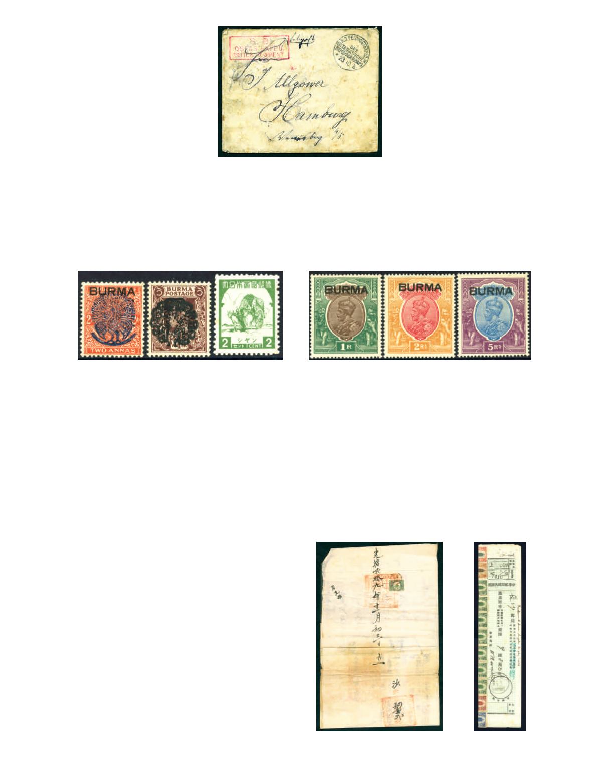 A small selection of the Burma stamps mounted on pages, starting from the 1937 up to 60’s, including opt. ‘BURMA’ and
