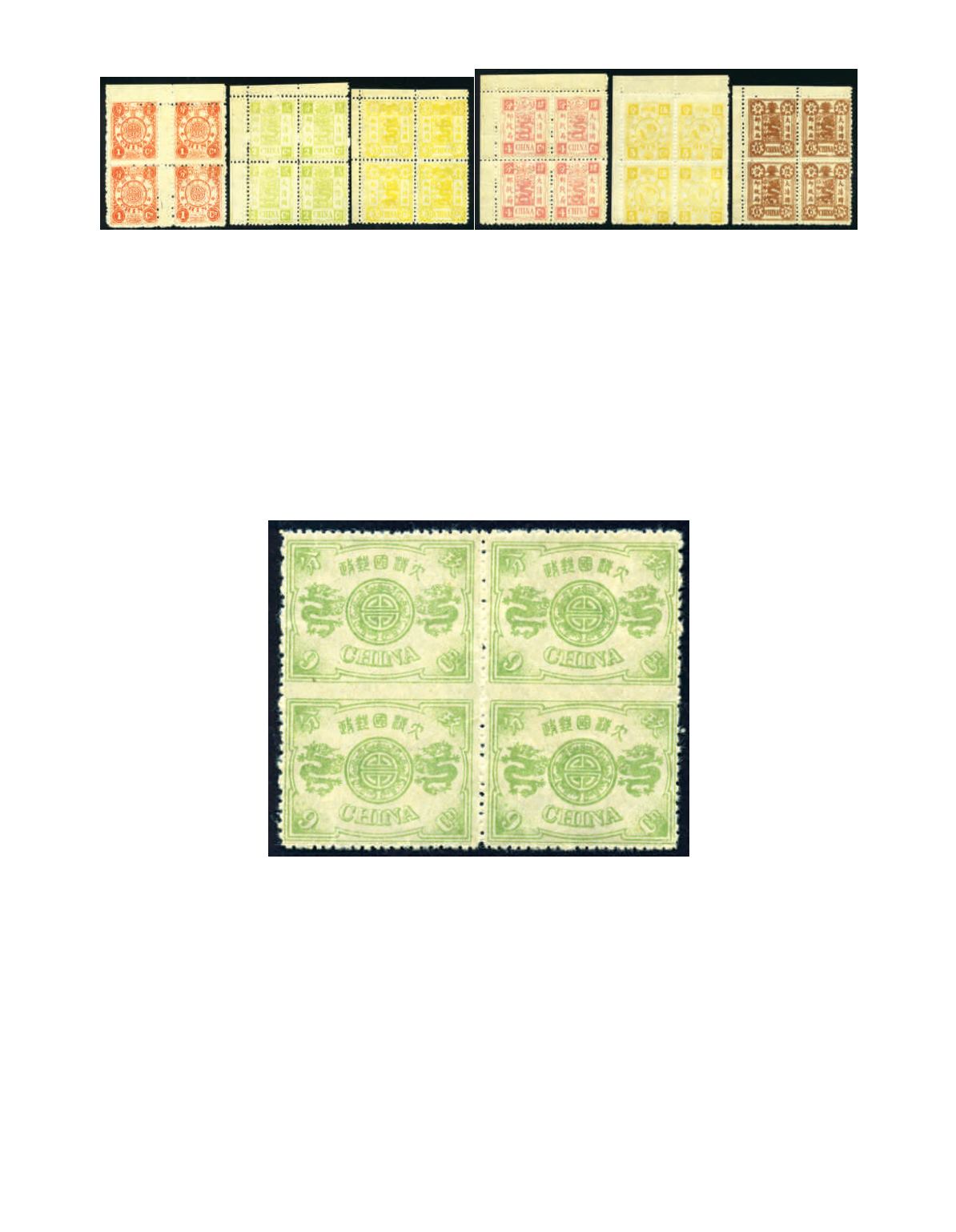 1897 Dowager Mollendorf printing 9 candarins bright yellow-green block of four imperforate horizontally between stamps,
