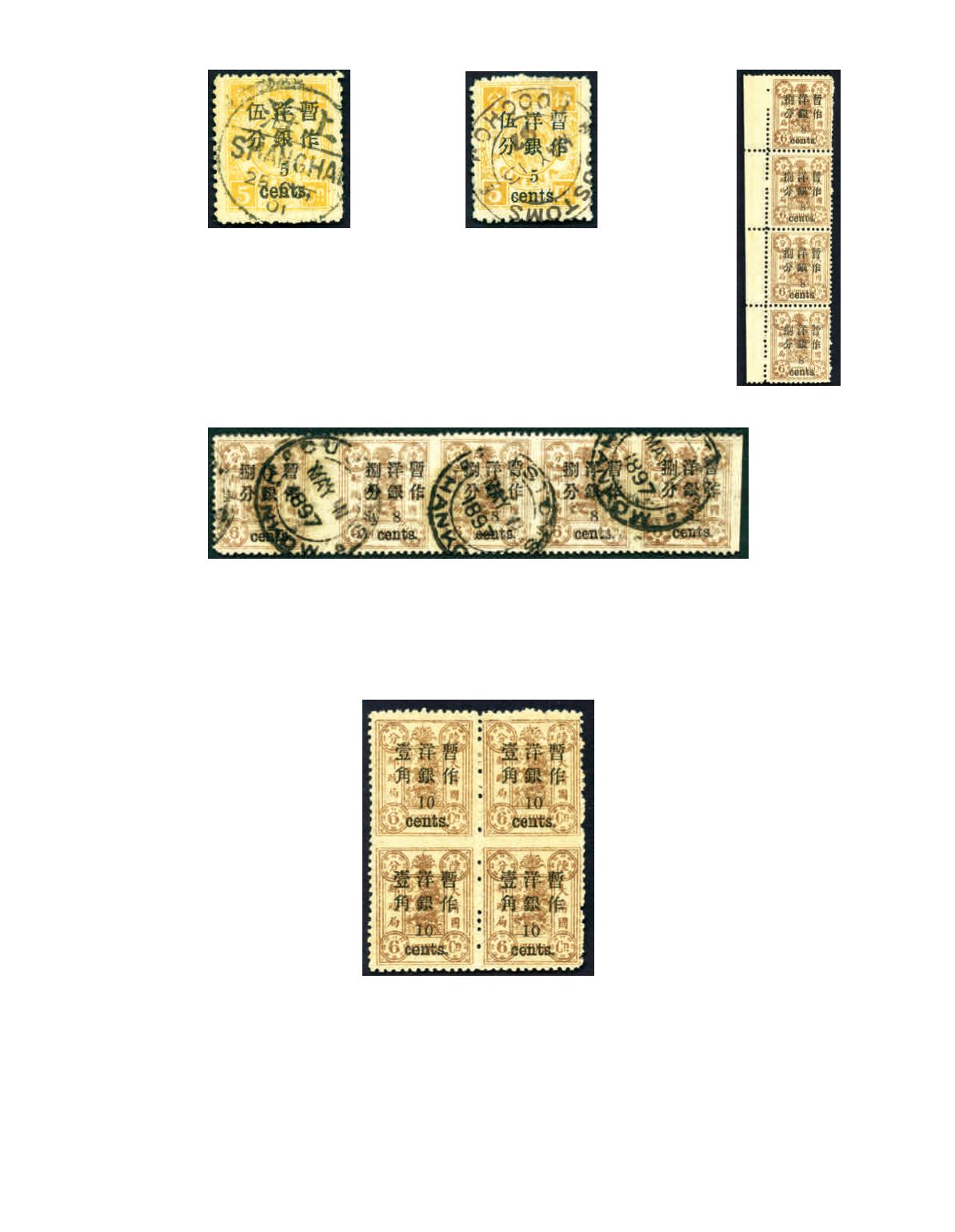 variety, tied by full strike of 'CUSTOMS/HANKOW/11.5.97' cds x 3, this is the only recorded strip of 5. A unique and great rarity
