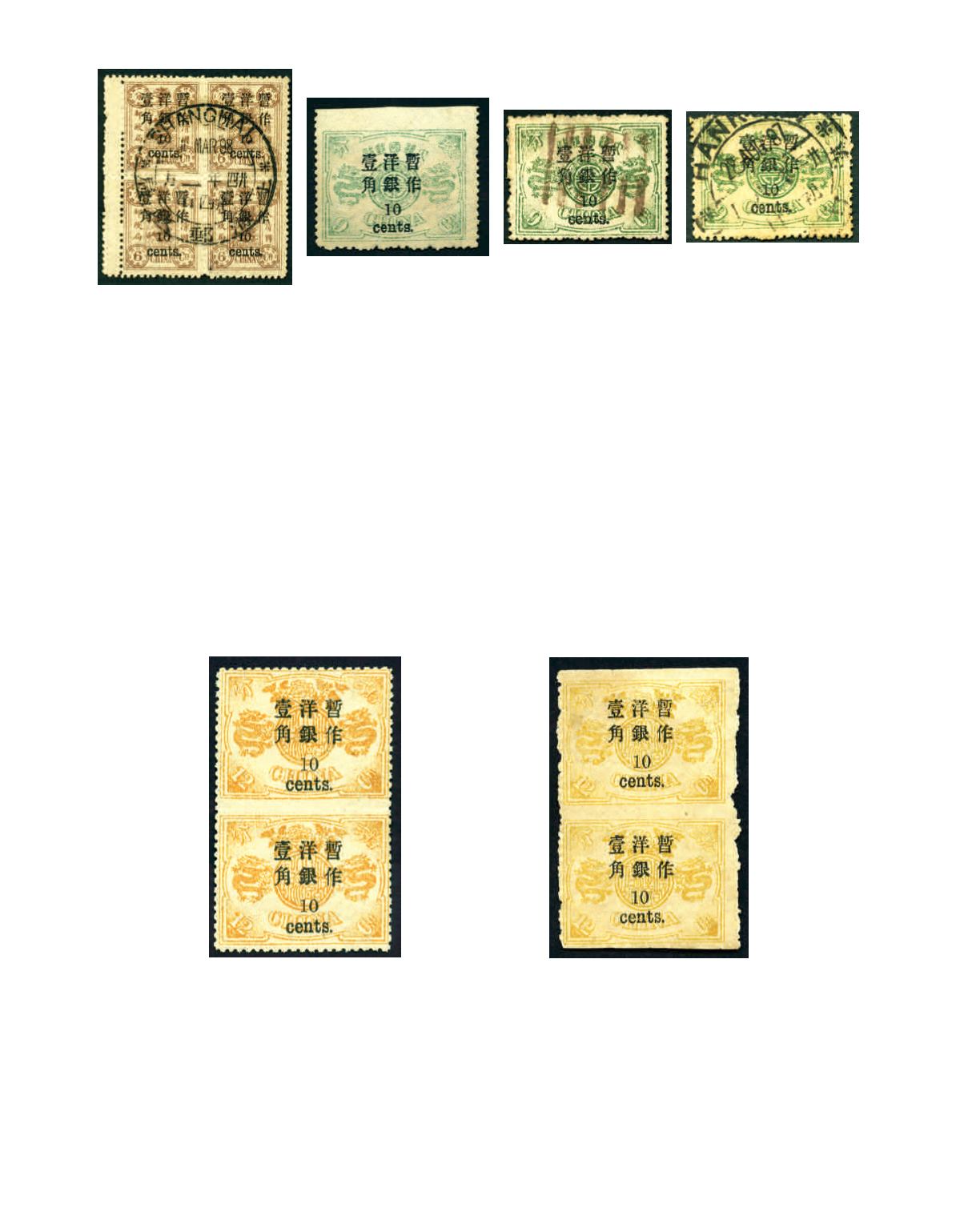 1897 Dowager small figures surcharged 10c on 6 cands brown block of 4, tied by full strike of 'SHANGHAI/10.3.98' Dollarchop,