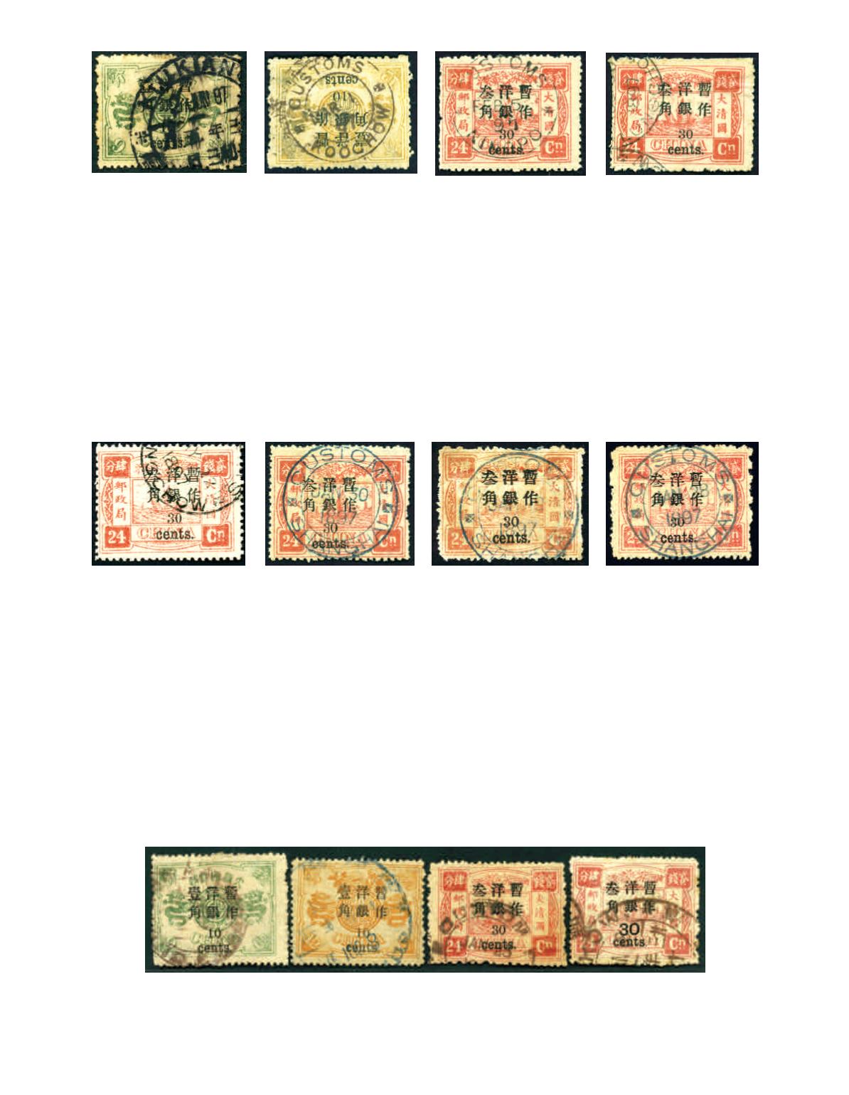 1897 Dowager small figures surcharged, 10c on 9 cands, 10c and 12 cands and 30c on 24 cands and large figures surcharged wide