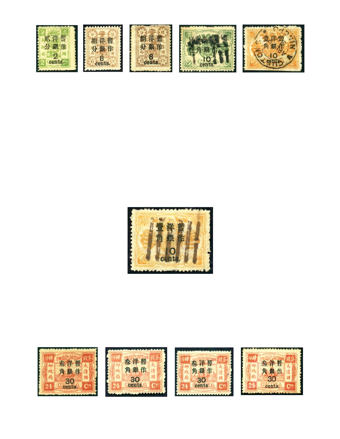 1897 Dowager large figures surcharged 2.50mm on first printing, 10c on 12 cands brown orange (Golden Dragon), tied by full