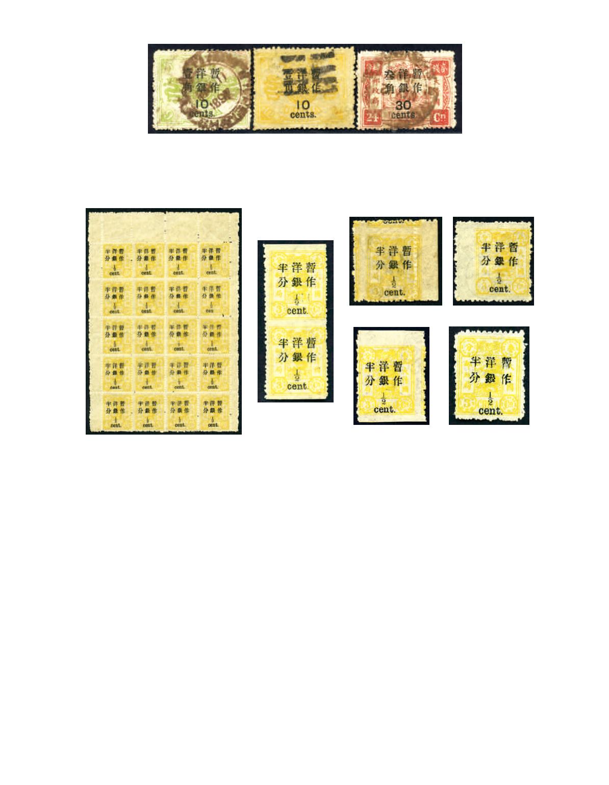 1897 Dowager large figures surcharged 2.50mm on second print, 1/2c on 3 cands chrome yellow block of 20 with sheets margins,