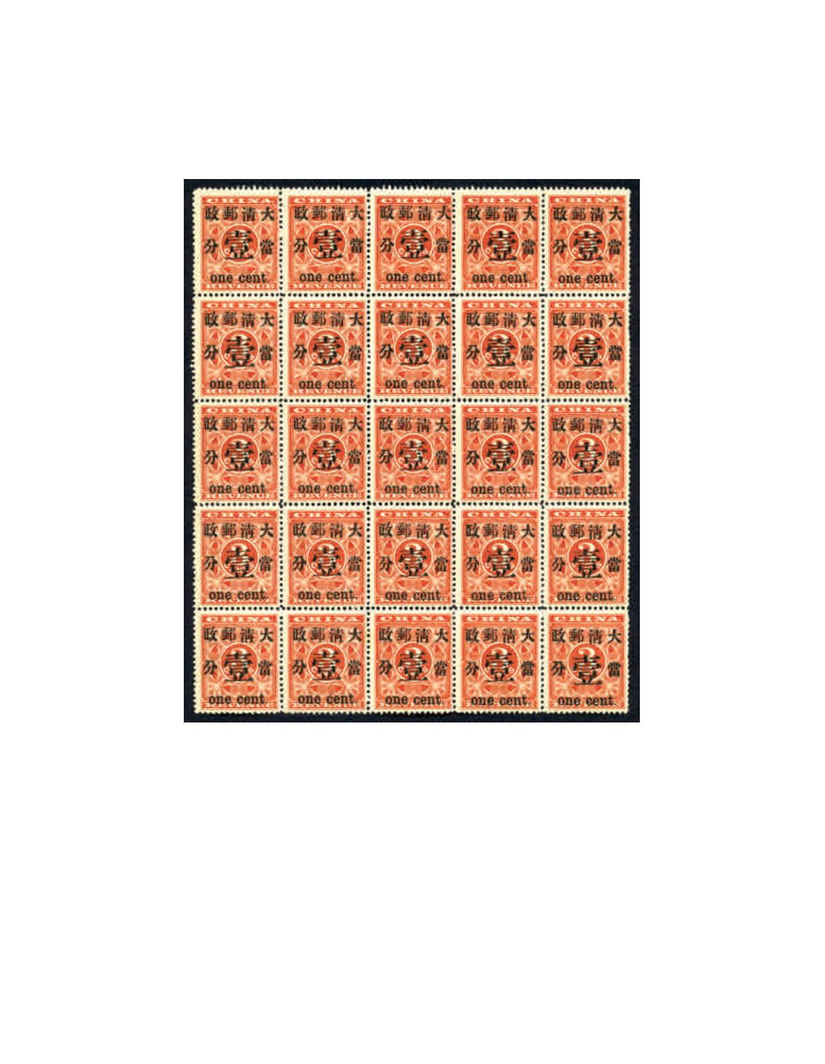 1897 Large figures surcharged 1c on 3c complete pane of 25, with constant variety Large Box, very lightly hinged on 4 stamps