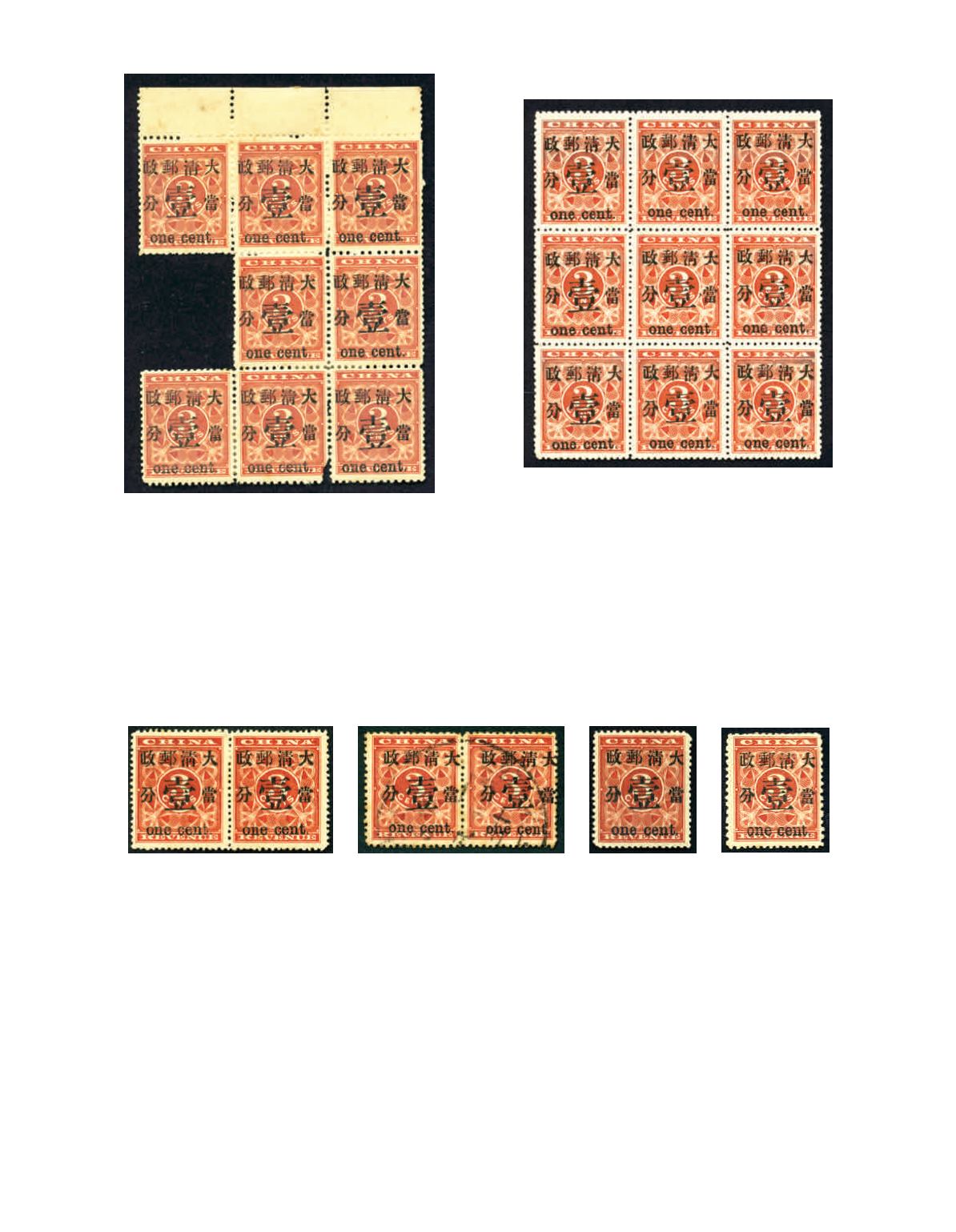 1897 Large figures surcharged 1c on 3c block of 9, with a Large Box variety, mint skilfully regummed. Chan 87. Photo