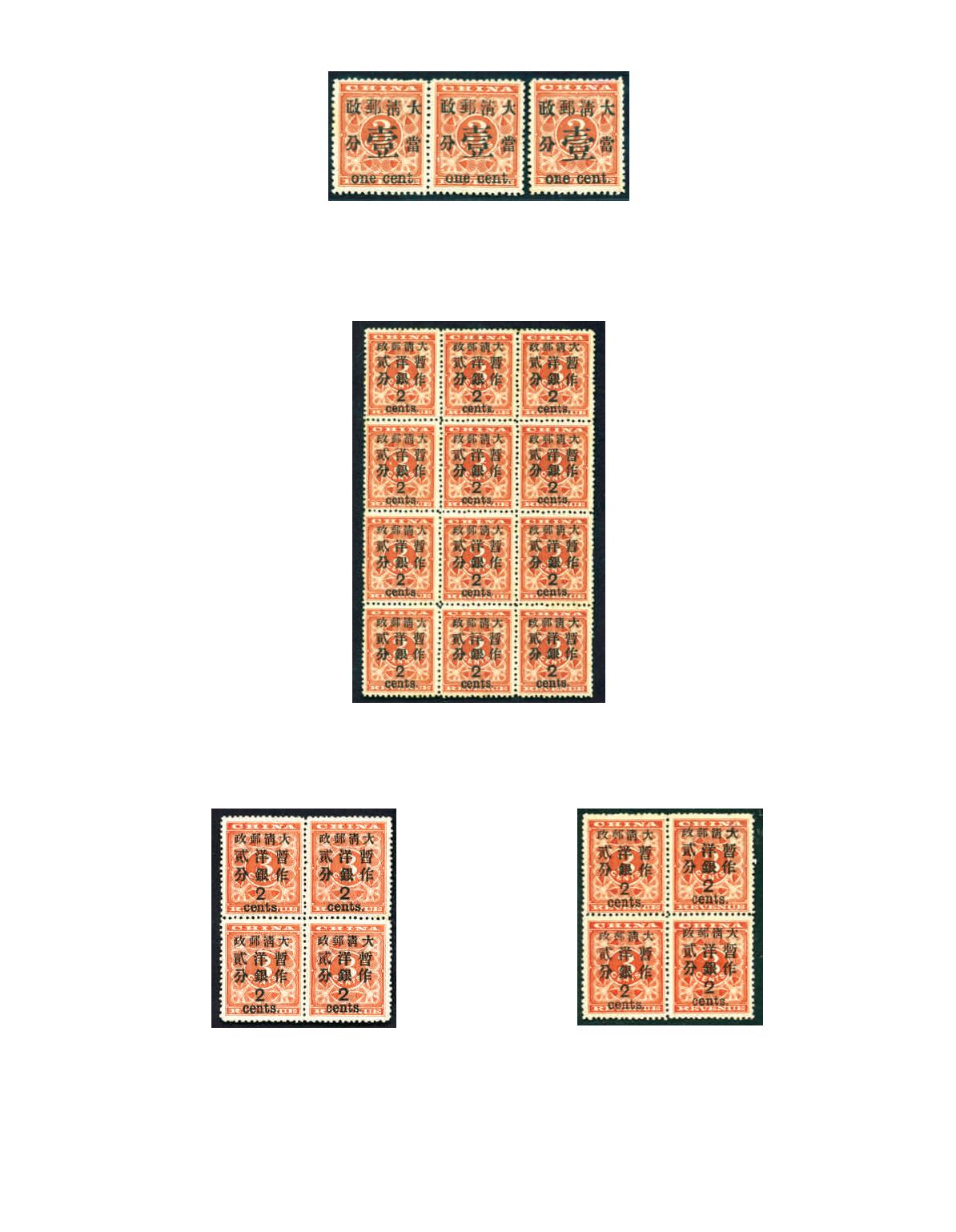 1897 Large figures surcharged 2c on 3c block of 12, mint full original gum with some toning, rare multiple. Chan 88. Photo