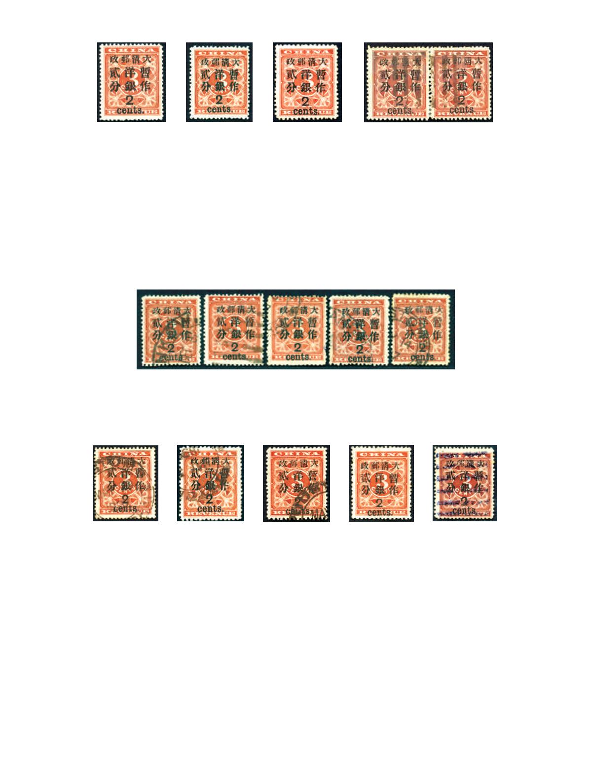 1897 Large figures surcharged 2c on 3c x 5, all used, with Dollar chop and Customs cancellation. Chan 88. Photo