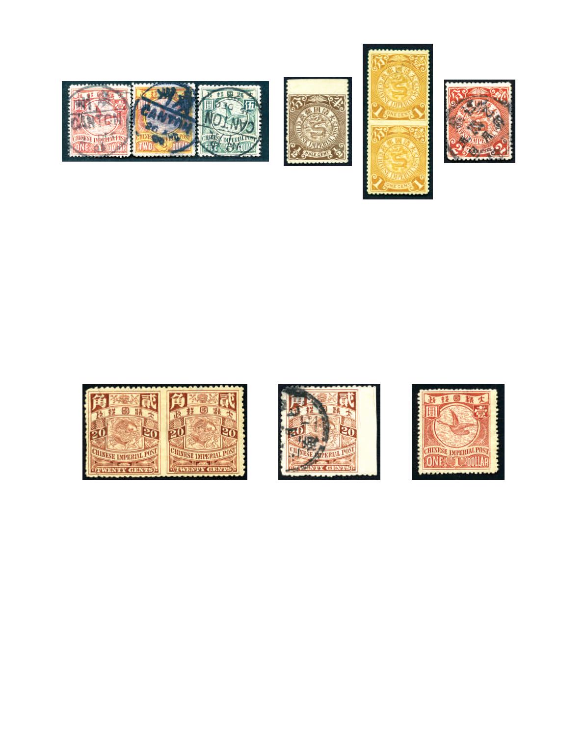 1902-10 Coiling Dragon without watermark, 1/2c to $5 complete set of 19, missing 7c crimson, all tied by bilingual 'CANTON'