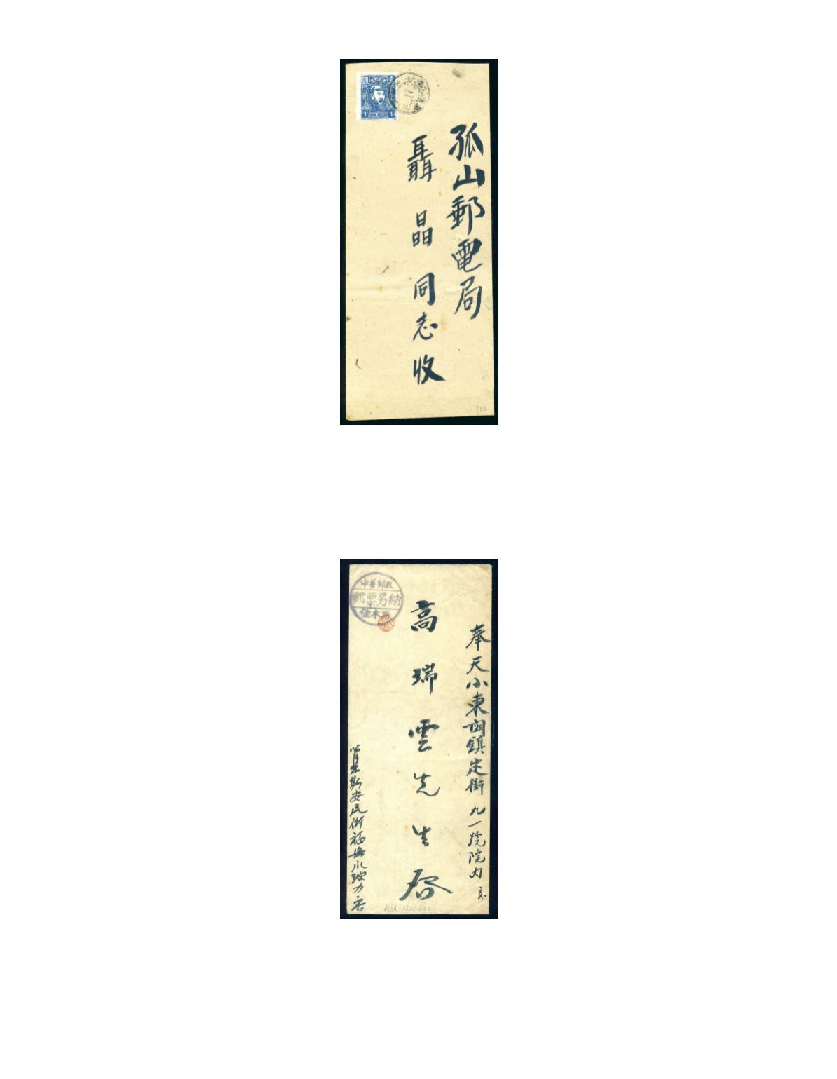194? East Liaoning Posts, a cover from Antung to Gushan Telephone and Telegraph Bureau, bearing Antung 1st print, Chuteh and