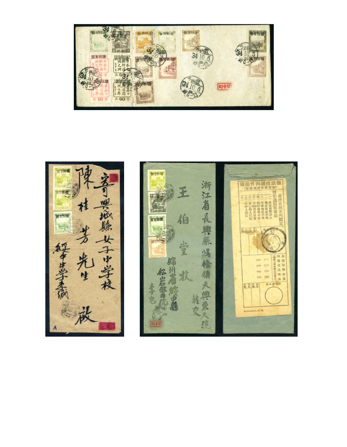 and 30c light brown (Yang NE338-339, 343) tied by char. 'SUICHONG/CHINCHOW' cds, on reverse with complete returned to