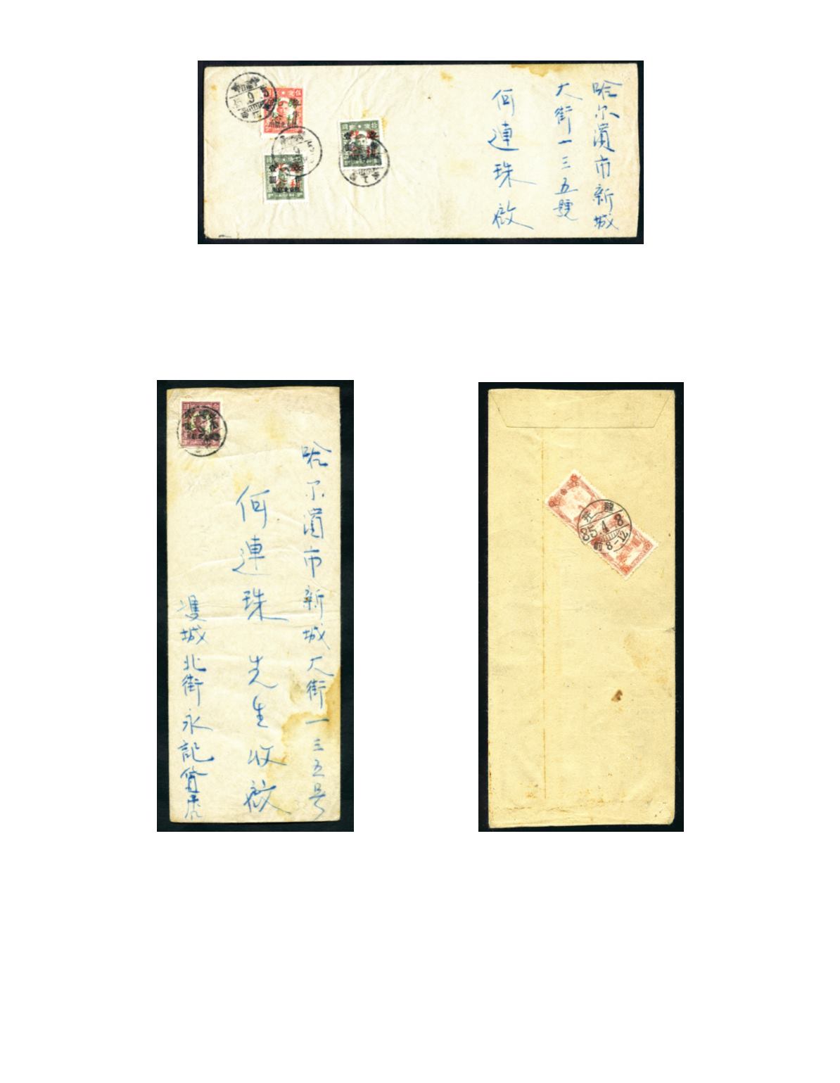 1946 (5 Sept.) A cover from Shuangcheng to Harbin, bearing Shuangcheng overprinted 'Victory' on SYS for use in Northeast,