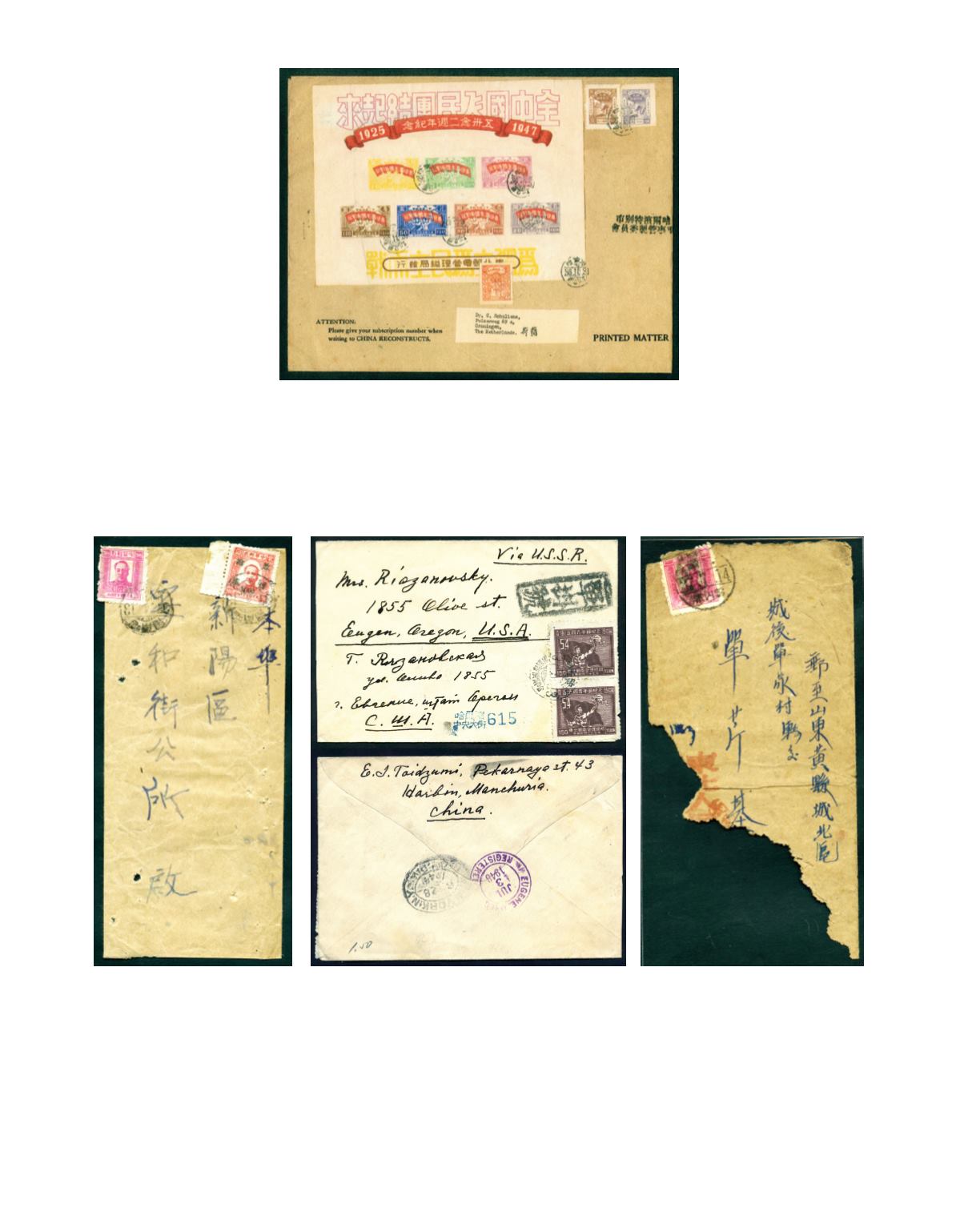 very fine char. 'HARBIN SPECIAL CITY' cds, on reverse with 'NEWYORK/28.6.48' transit and 'EUGENE/3.7.48' arrival cds.