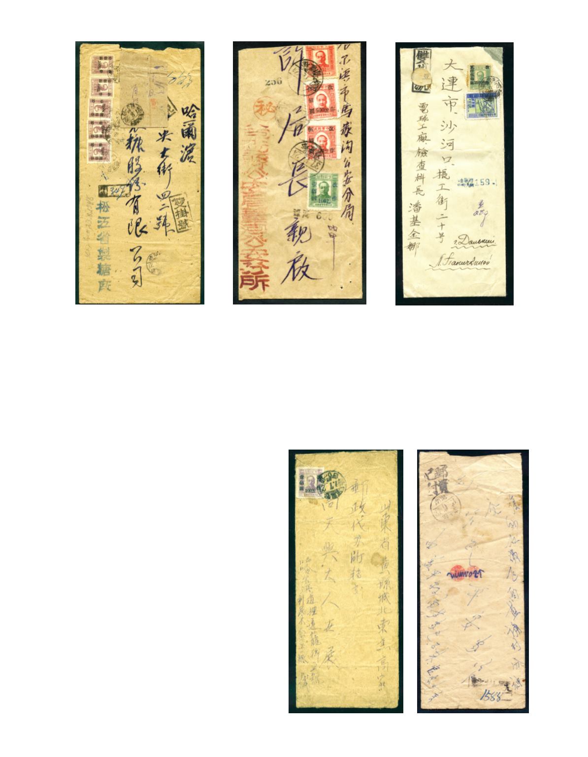chop in black, and a complete reg. receipt attached. char. 'HARBIN/21.8.48' arrival cds. On reverse with Chairman Mao, 2nd
