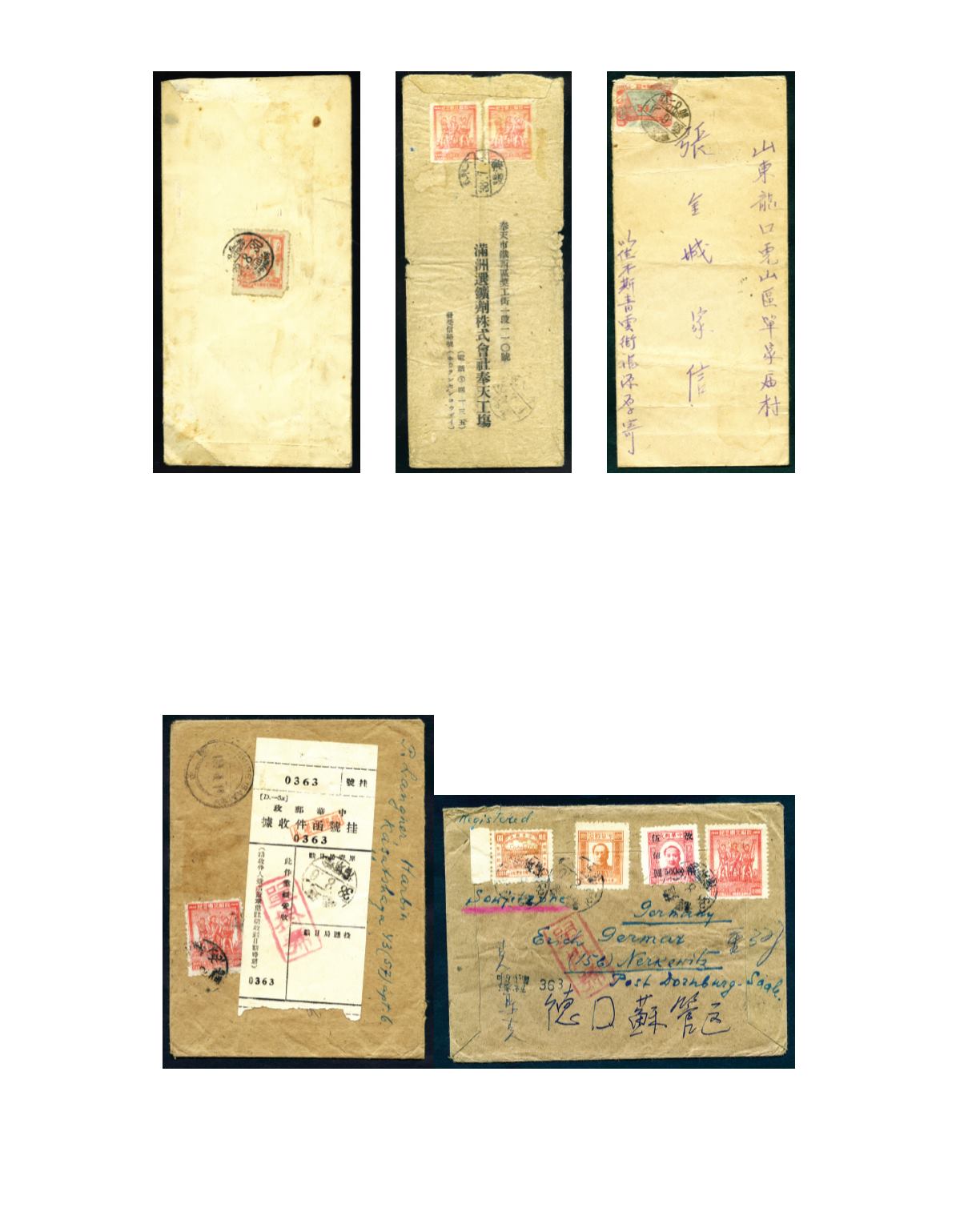 1949 (6 Aug.) A cover from Harbin registered to East Germany, bearing 5th surcharge on Chairman 1st print $500 on $2,
