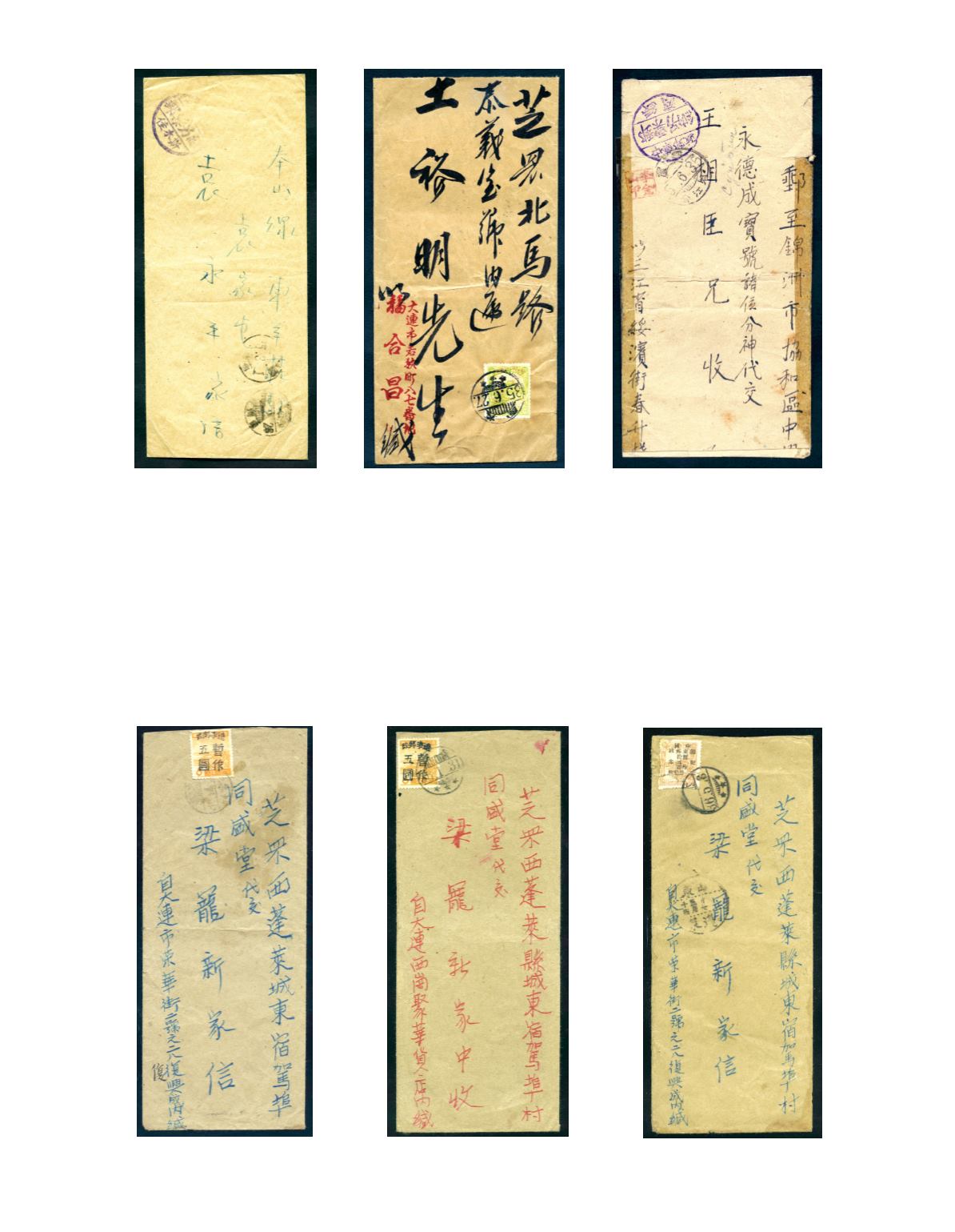 1946 (27 June) A cover from Dairen to Chefoo, bearing Transfer of Administration on 1st April and Labour Day on Manchukuo