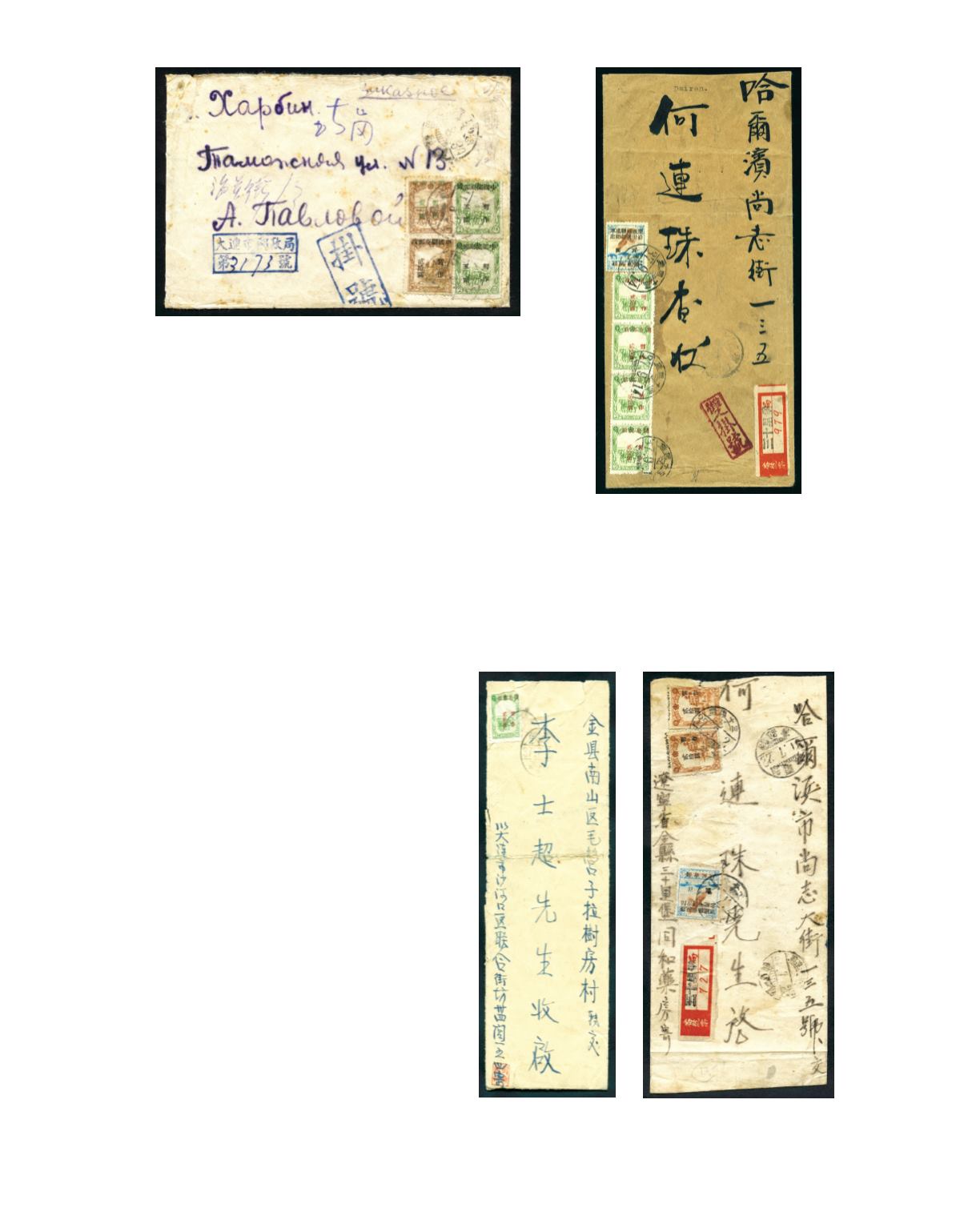 1948 (17 Aug.) A cover from Dairen registered to Harbin, bearing Luda surcharged 'Chinese Kwantung Postal Service' on