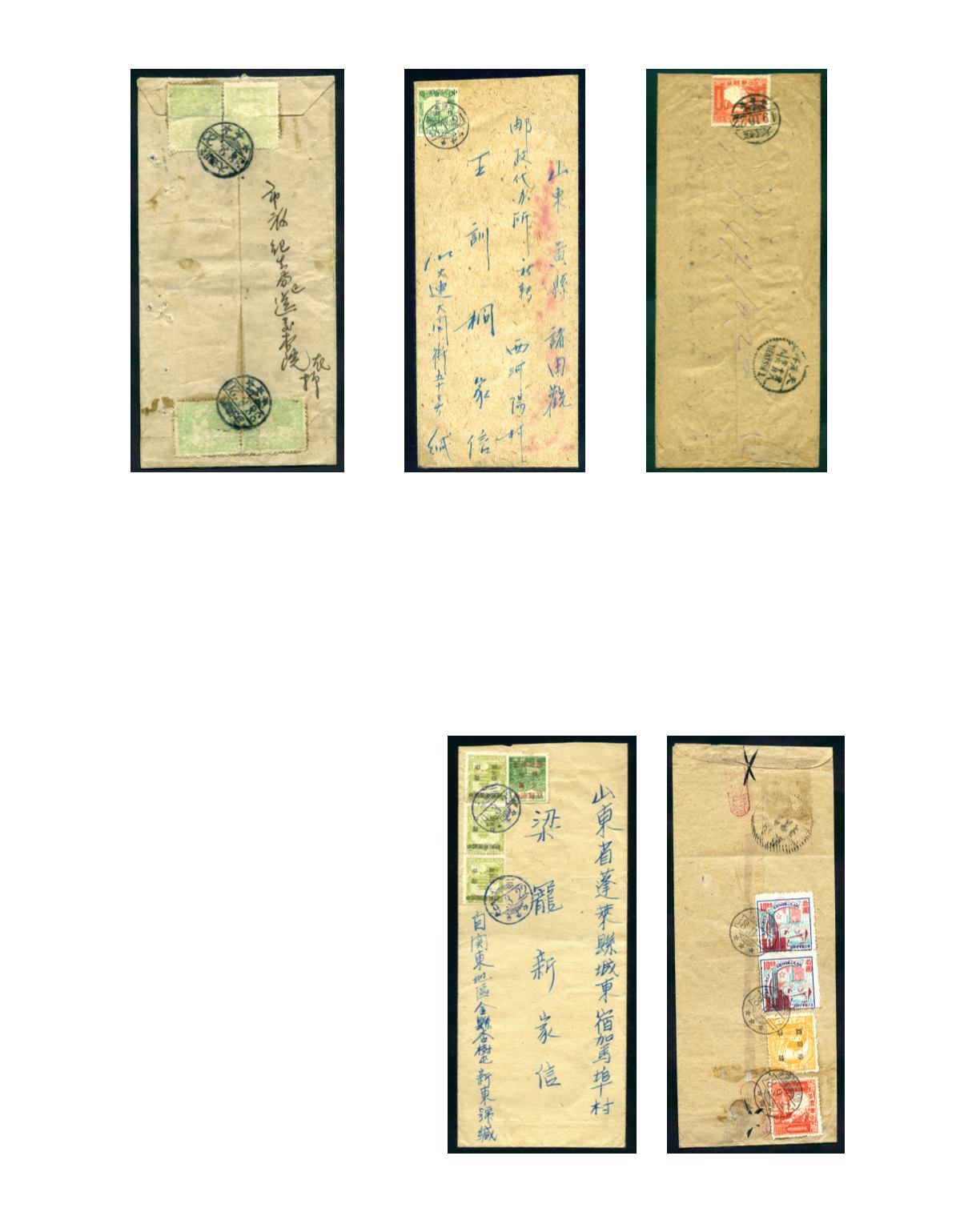 1949 (21 Jan.) A cover from Dairen to Shantung, bearing large char. Surcharged 'Chinese Postal Administration and Kwantung
