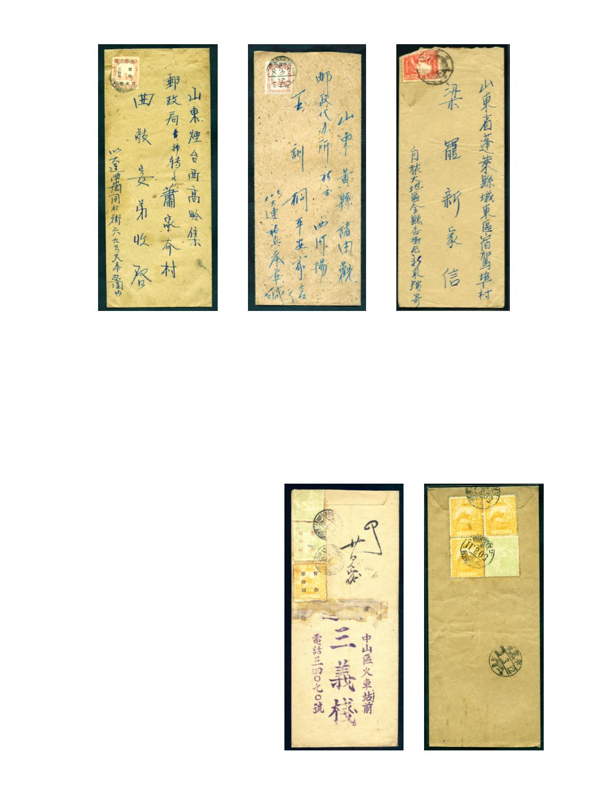 1949 (Mar.) A cover from Dairen sent to Chefoo, bearing Luda small char. surcharged 'Kwantung Posts and Telegraph' on