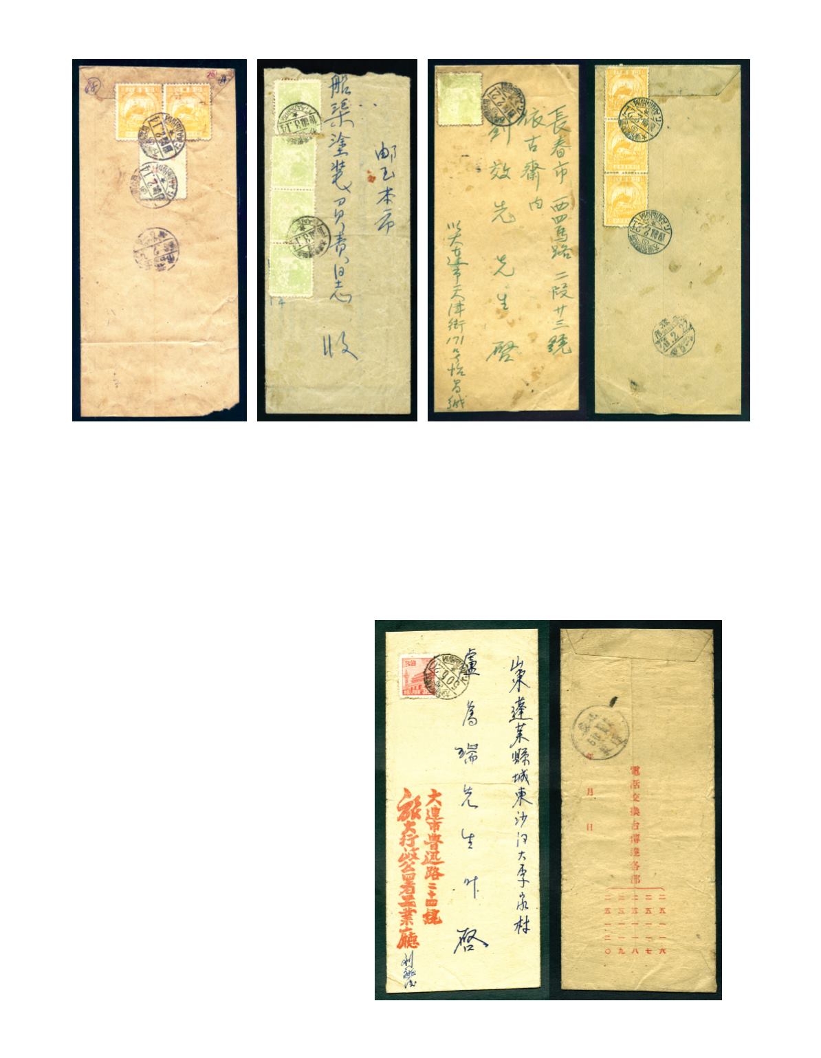 bilingual ‘DAIREN CITY POST OFFICE’ cds, with char. ‘CHENGCHUN//15.2.50’ arrival cds, bottom folded and a tear at left.