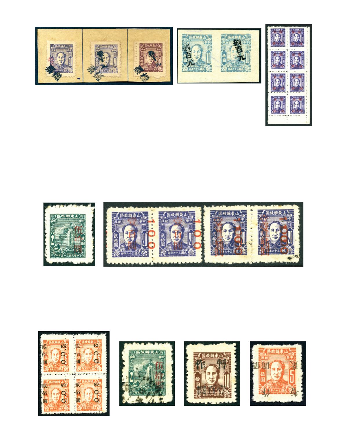 1947 Shantung handsurchared with small char. yuan in one vertical line, $800 on $10 light blue horizontal pair imperf. variety,
