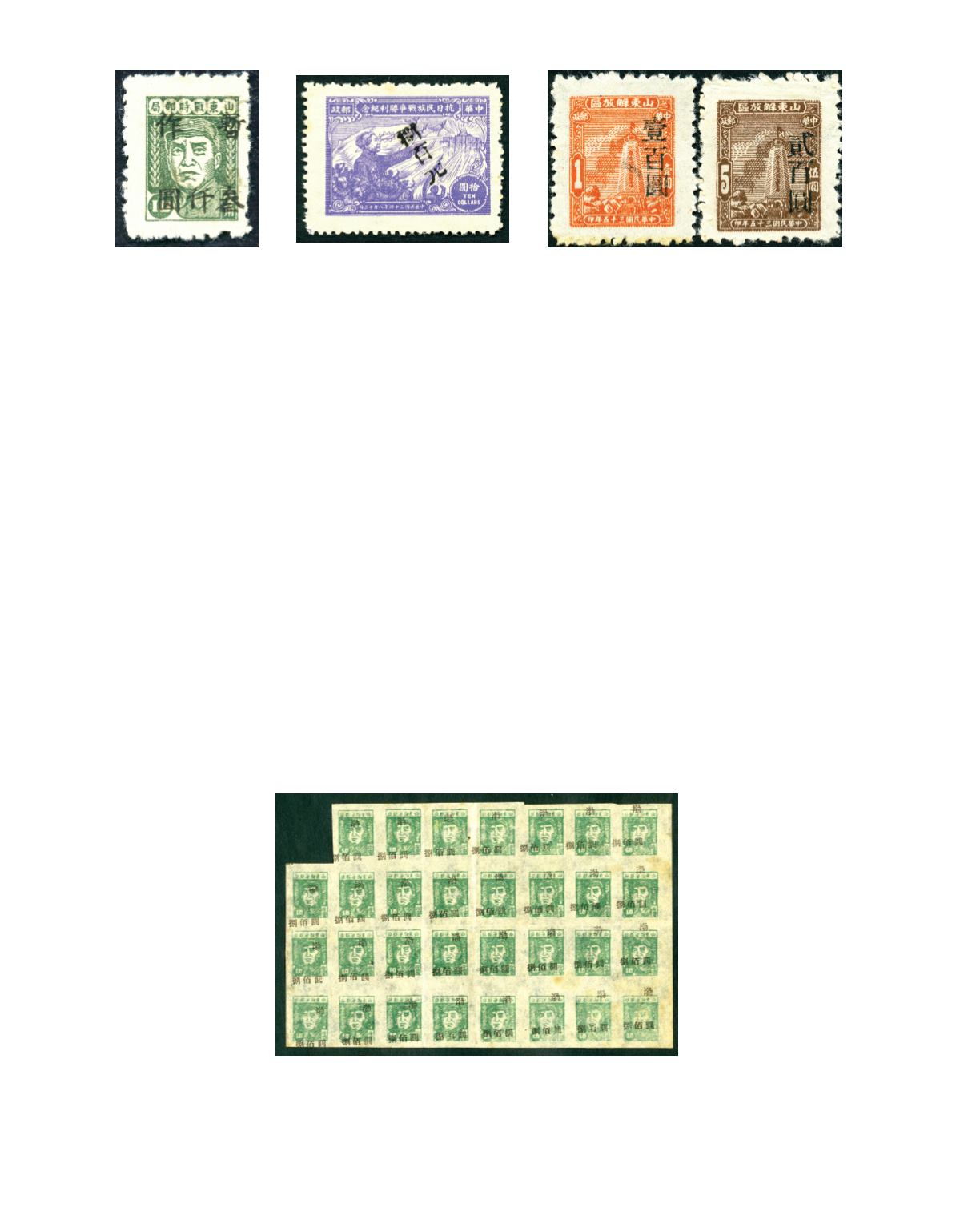 1947 Surcharged char. 'Temporarily Use For' on Chairman Mao, $100 on $10 chocolate, unused and no gum as issued. Yang