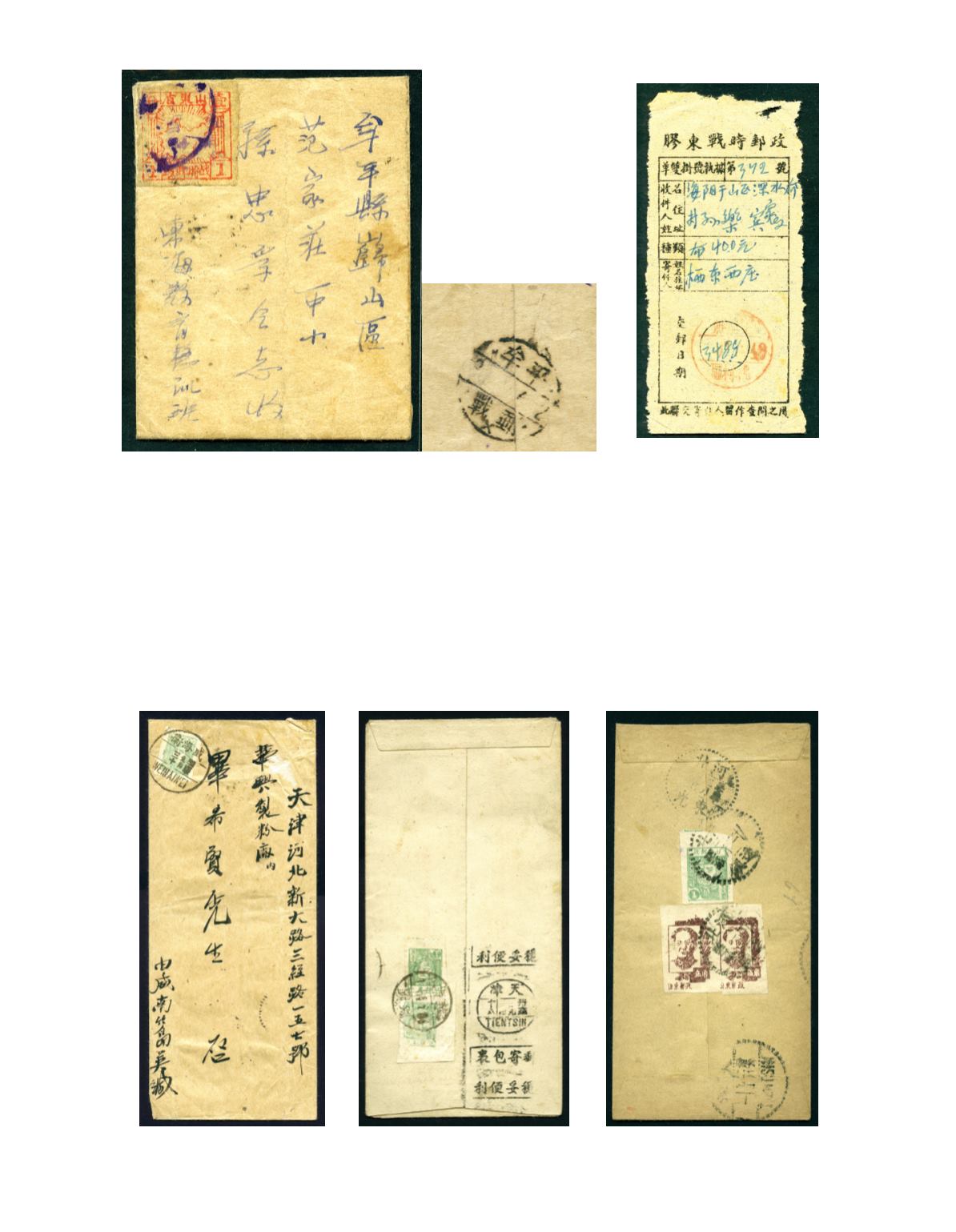 膠東戰時郵政單雙掛號執據
