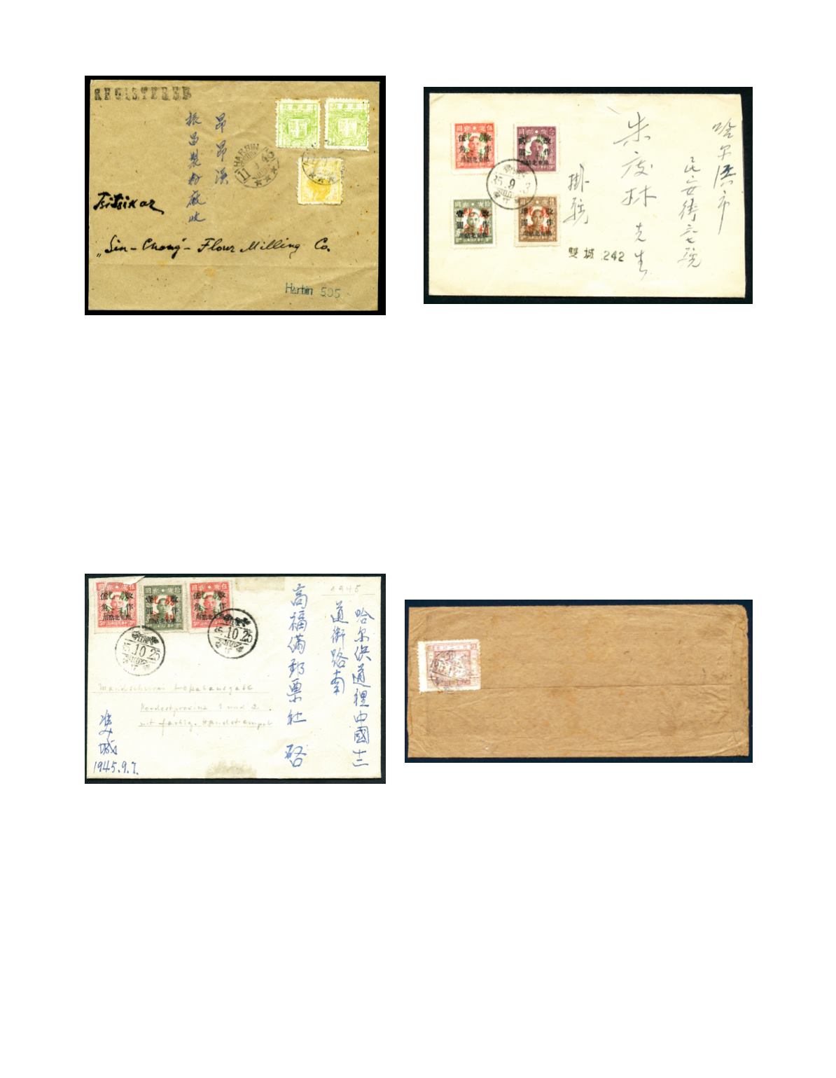1946 (3 Sept.) A cover from Shuangcheng reg. to Harbin, bearing the overprinted 'Victory' on SYS for use in Northeast complete