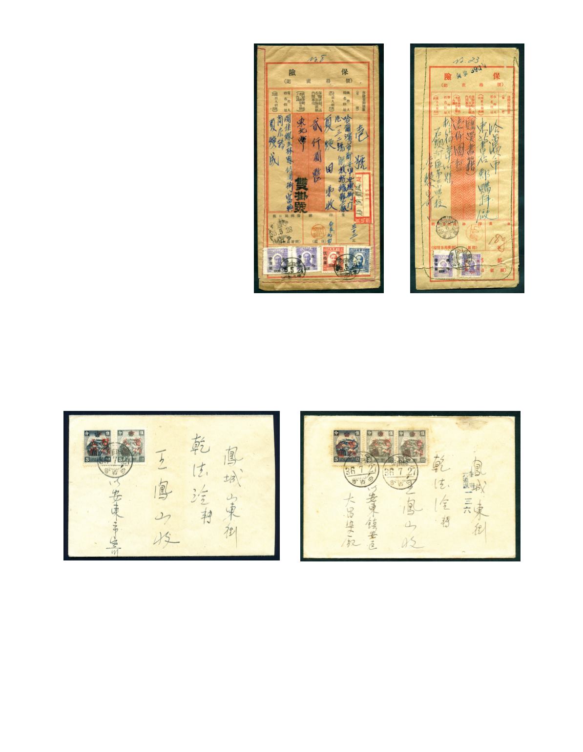 NE38, 41) tied by char. 'SHITOUHE' cds. And char. 'HARBIN/27.6.47' arrival cds, defects at the bottom causing damage to the