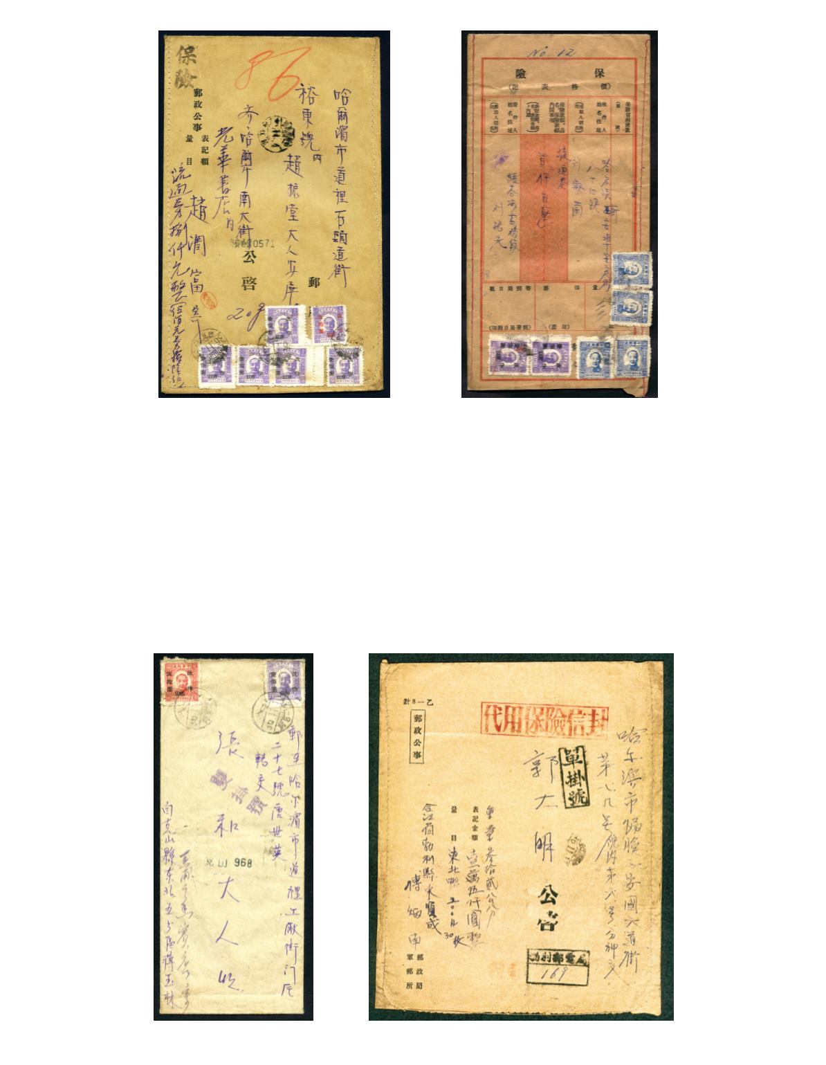 'HARBIN/4.11.47' arrival cds. On reverse with violet Insurance Seal issued by Transportation Bureau x 3. rare. Fine. Photo