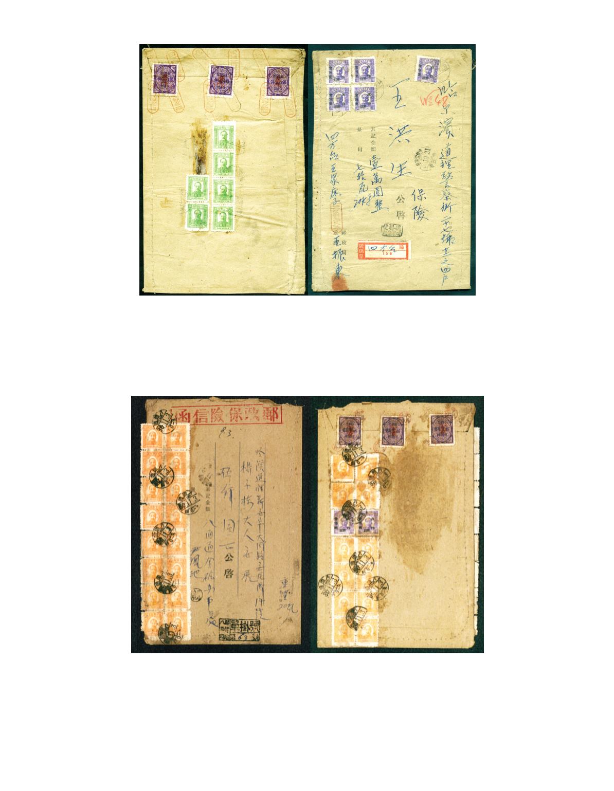 1947 (29 Oct.) A large insurance cover from Sifangtai double registered to Harbin, on front  bearing surcharged on 1st