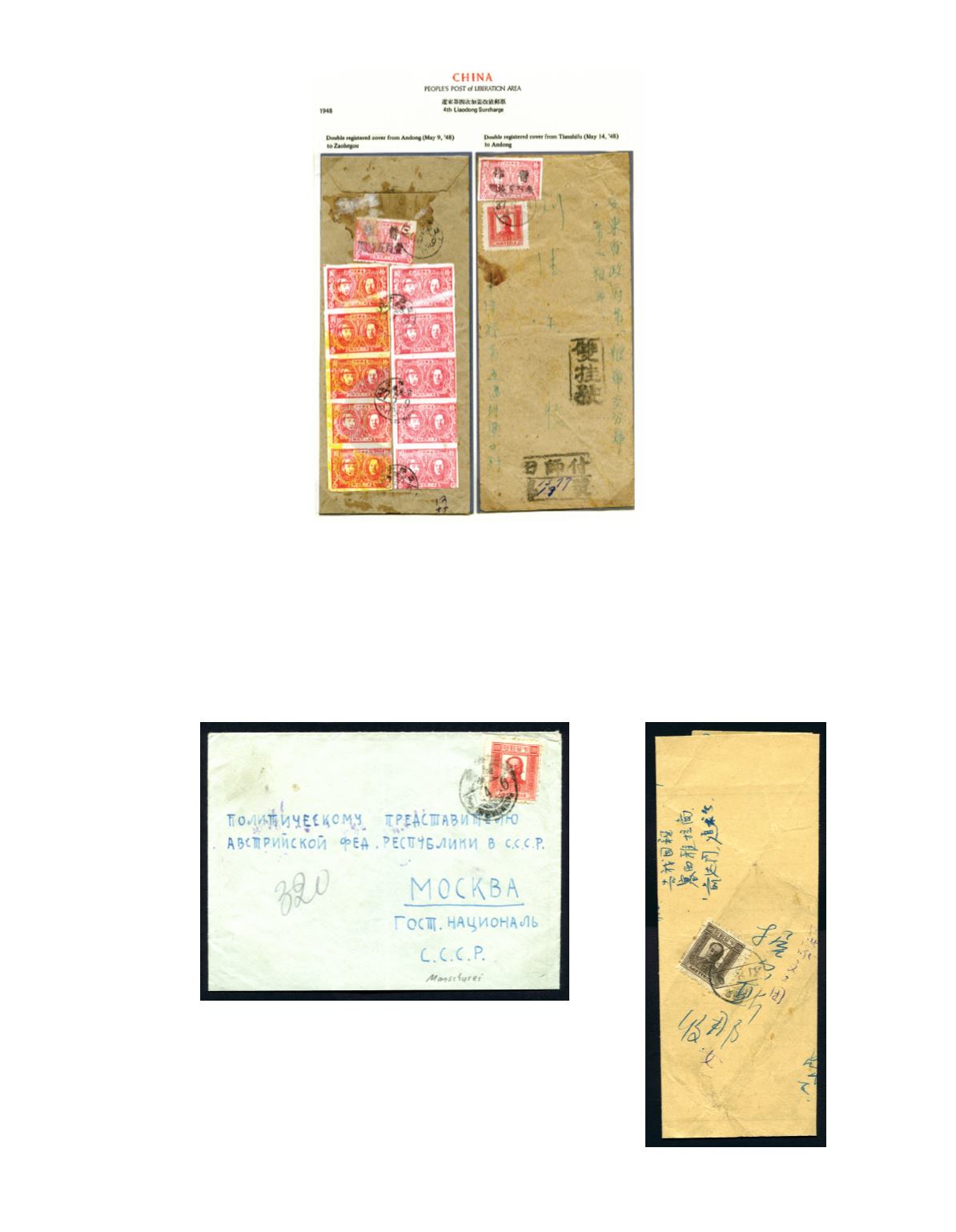 1948 A pair of covers mounted on described page. Compressing 1948 (9 May) A double registered cover from Antung to