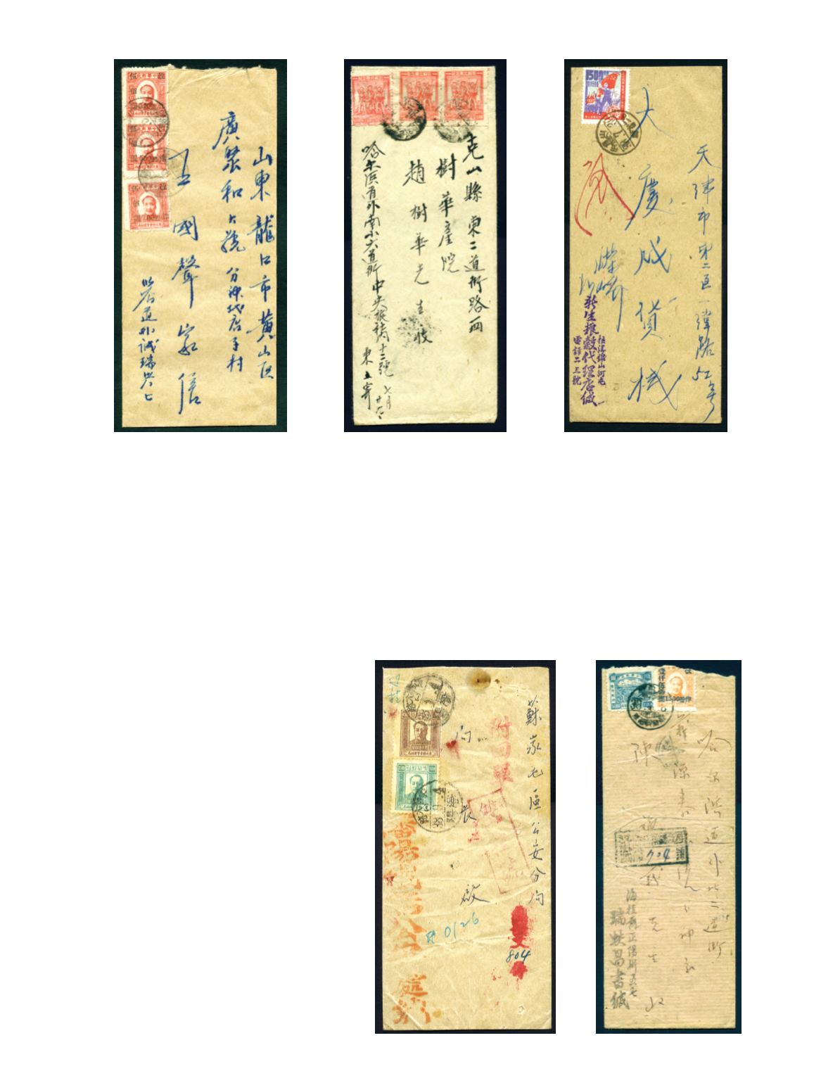 'HARBIN' cds, on reverse with 'TSITSIHAR/30.7.49' transit and 'KESHAN/31.7.49' arrival cds. Fine. Photo