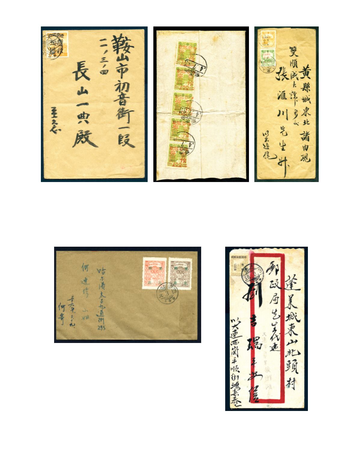 1947 (3 Sept.) A cover from Dairen to Penglai, bearing the surcharged 'Chinese