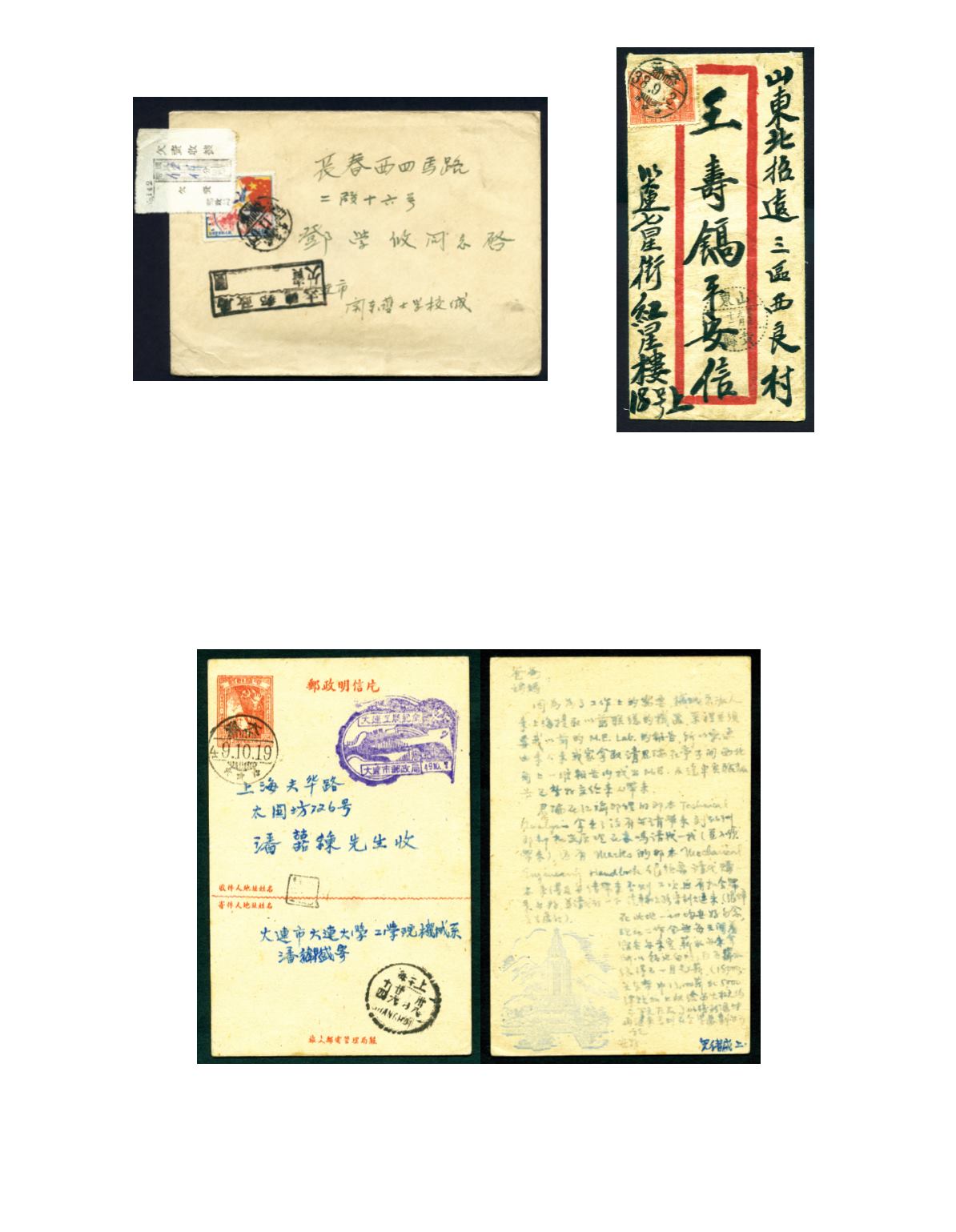 'DAIREN' cds, with char. 'SHANDONG/HUANGXIAN/12.9.49' arrival cds, fine .Photo