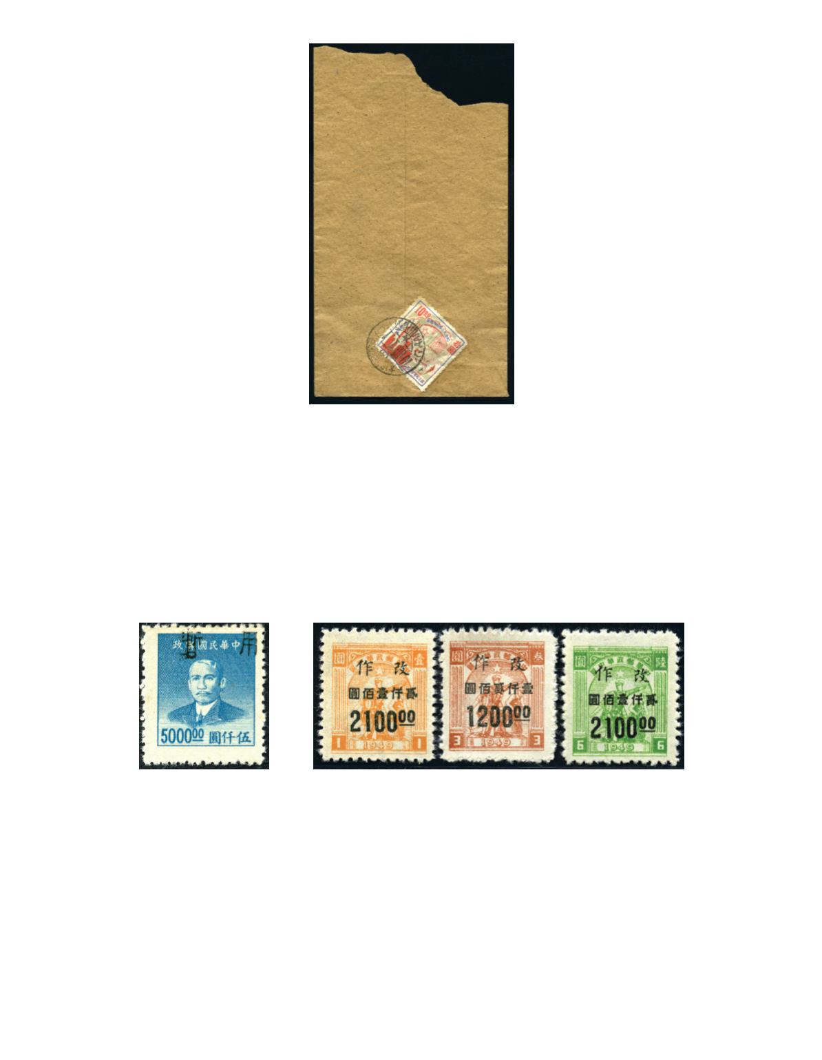 1949 Yun-Meng handsurcharge on ROC reverue stamp, with ‘Hupeh People’s Post’ $50 on 5c carmine with left sheet margin,