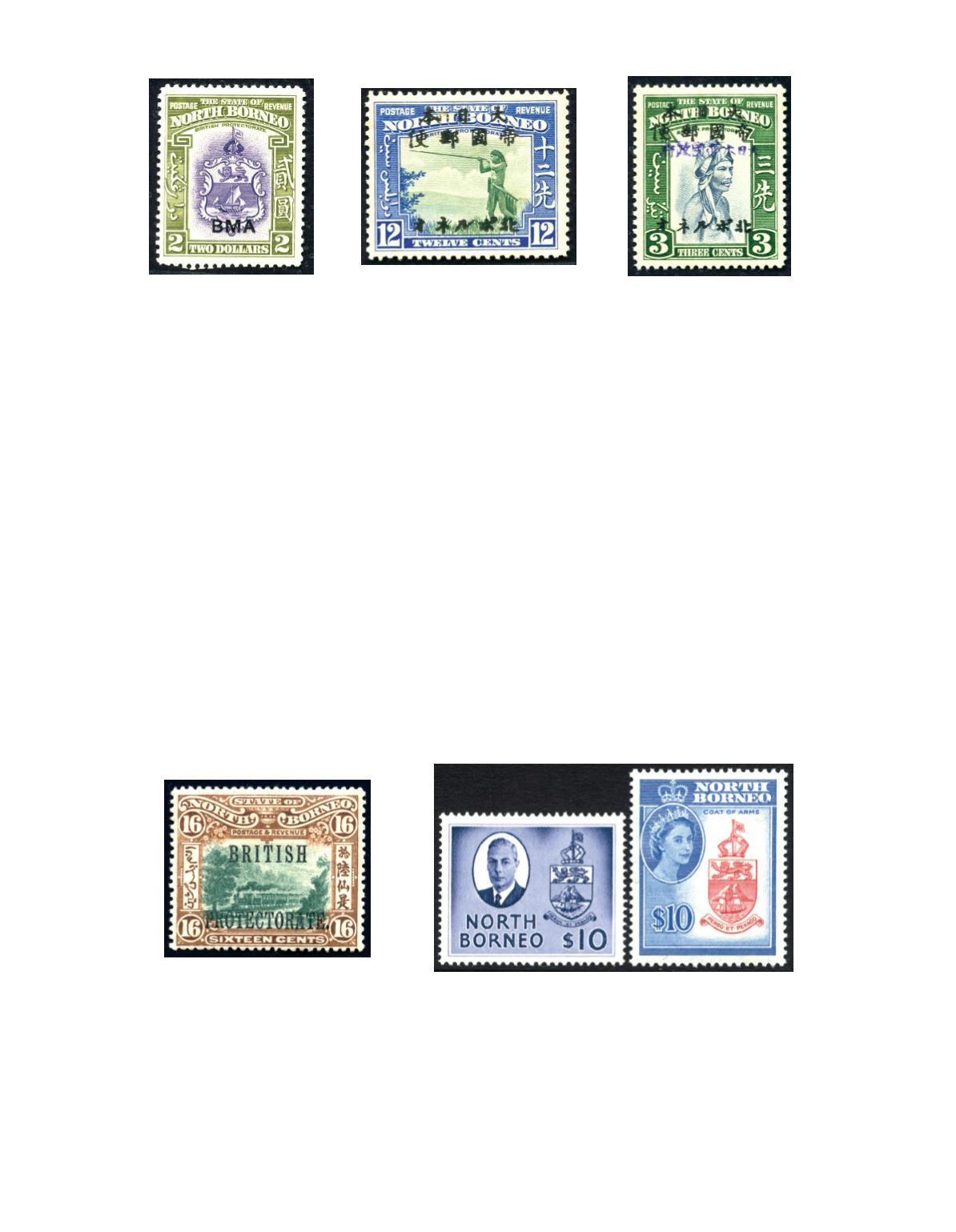 and 1964 overprinted ‘SABAH’ on QE North Borneo set, all mint and lightly hinged, fresh colour. Photo