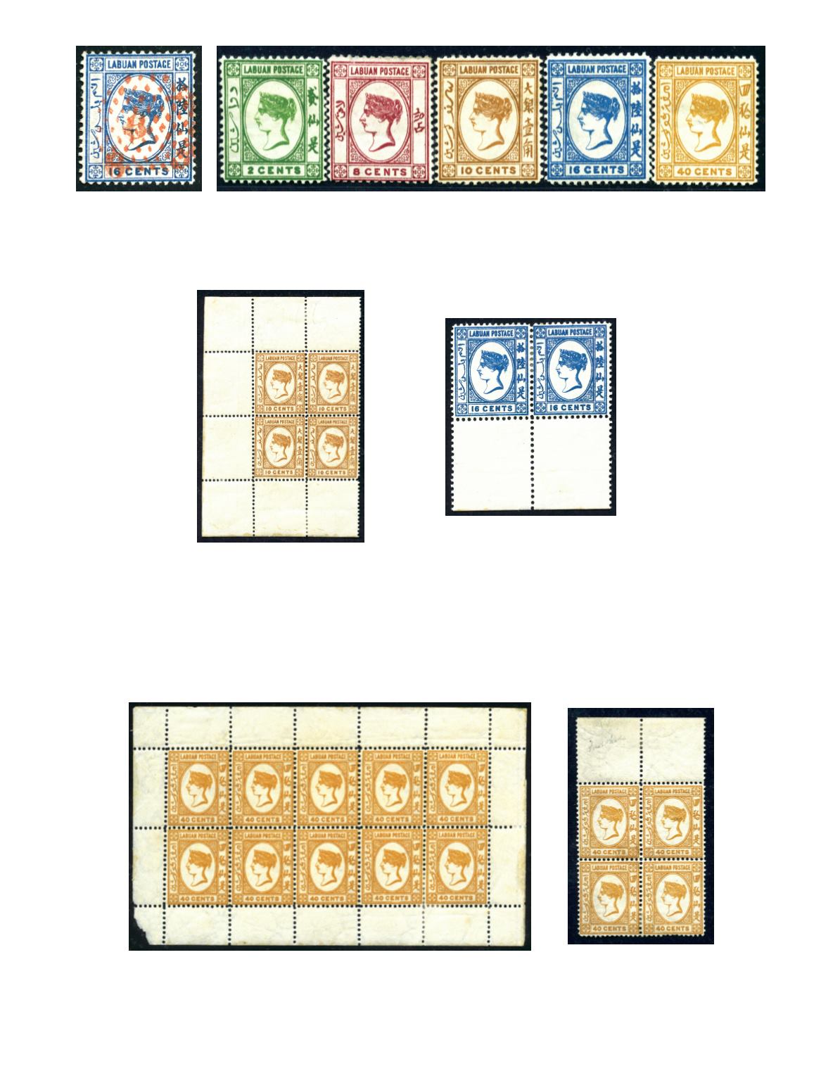 1883 Watermark Crown CA 10c yellow-brown block of with full margins on 3 sides, mint full original gum hinged in margins