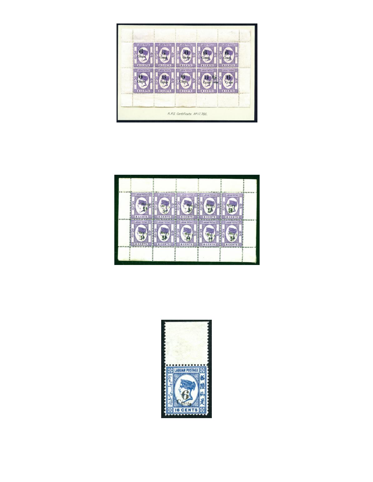 1891-92 Surcharges '6cents' on 8 cents mauve, 2mm. setting, complete sheet of 10 with surcharge inverted variety, mint full