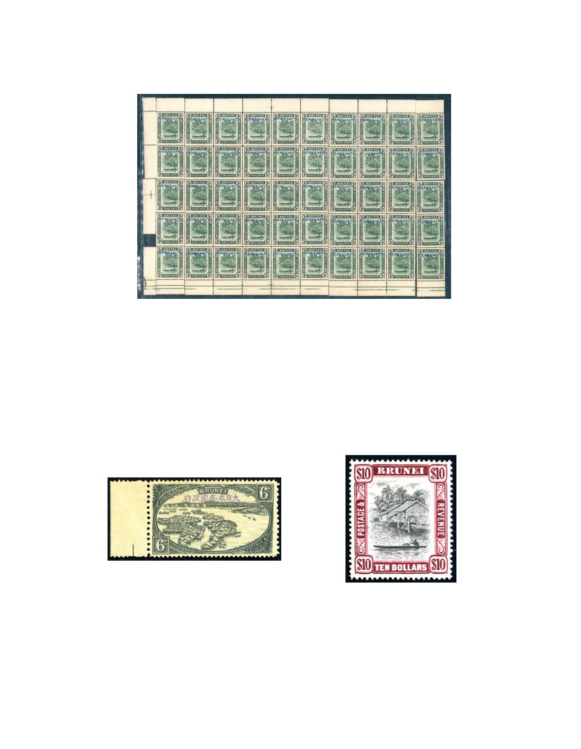 1942 Overprinted ‘Imperial Japanese Government’ in Japanese char. on Brunei 6c greenish grey complete sheet of 50, some split