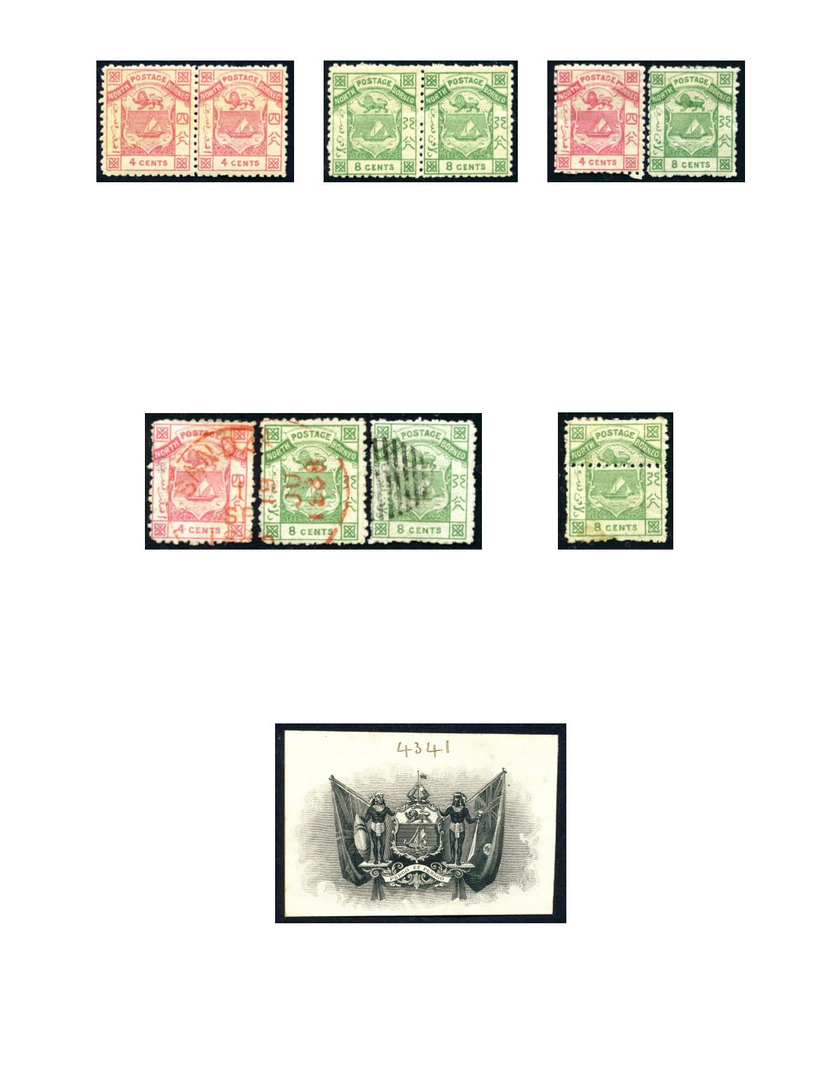 1886 North Borneo - Bradbury Wilkinson Die Proof, showing Large Arms of the company with additional flags both sides,