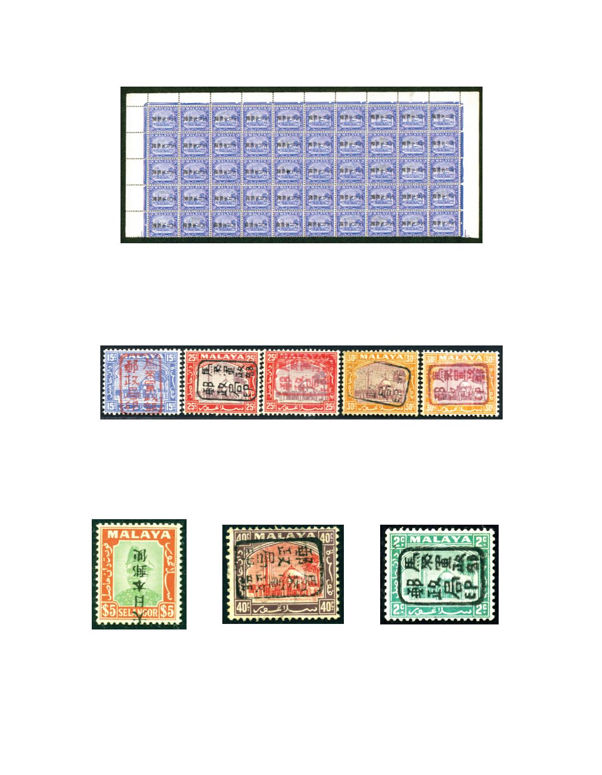 1942 A small selection of overprinted 'Malaya Military Government Division Postal Service Bureau Seal' on Selangor Mosque at