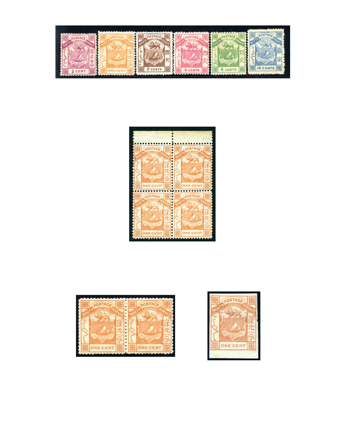 block, 1/2 cent with lightly toned gum, fine to very fine, a scarce set of multiples.
