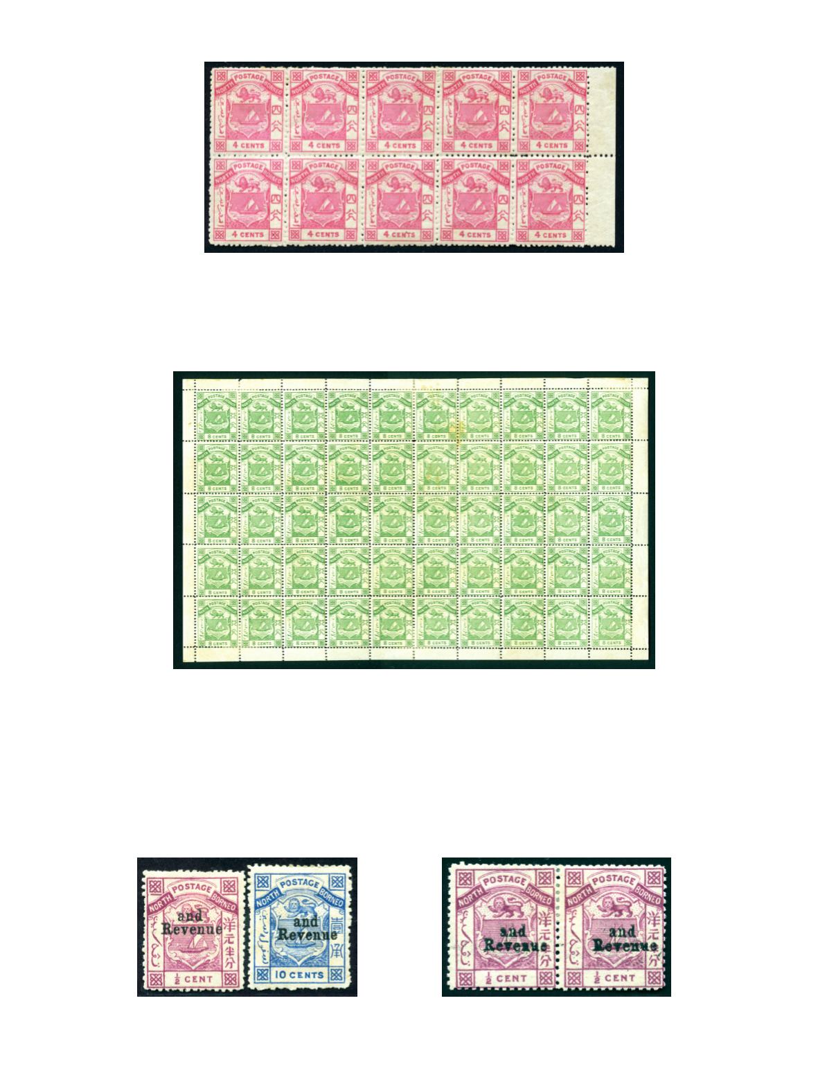 1886 perf 14 issue 8 cents green complete sheet of 50, mint full original gum with 6 light hinges and some toning, scarce. SG 12.